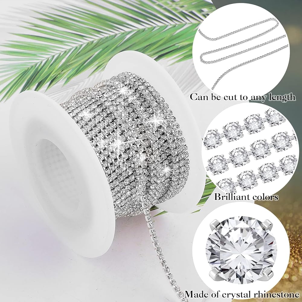 💎Suitable Size: Rhinestone Chain Trim Total Length: 10 Yards (360Inch); Rhinestone Width: 2MM/0.08Inch. It can be cut to any length that you desired