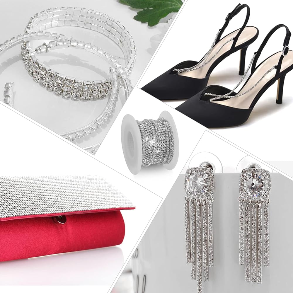 💎Wide Application: Beautiful rhinestone string for crafts ideal for Various holiday decoration, decorating wedding party, bridal veil, costumes, garments, cake decoration, candles, cups, cellphone case, photo fram, headband, any craft projects and so on.