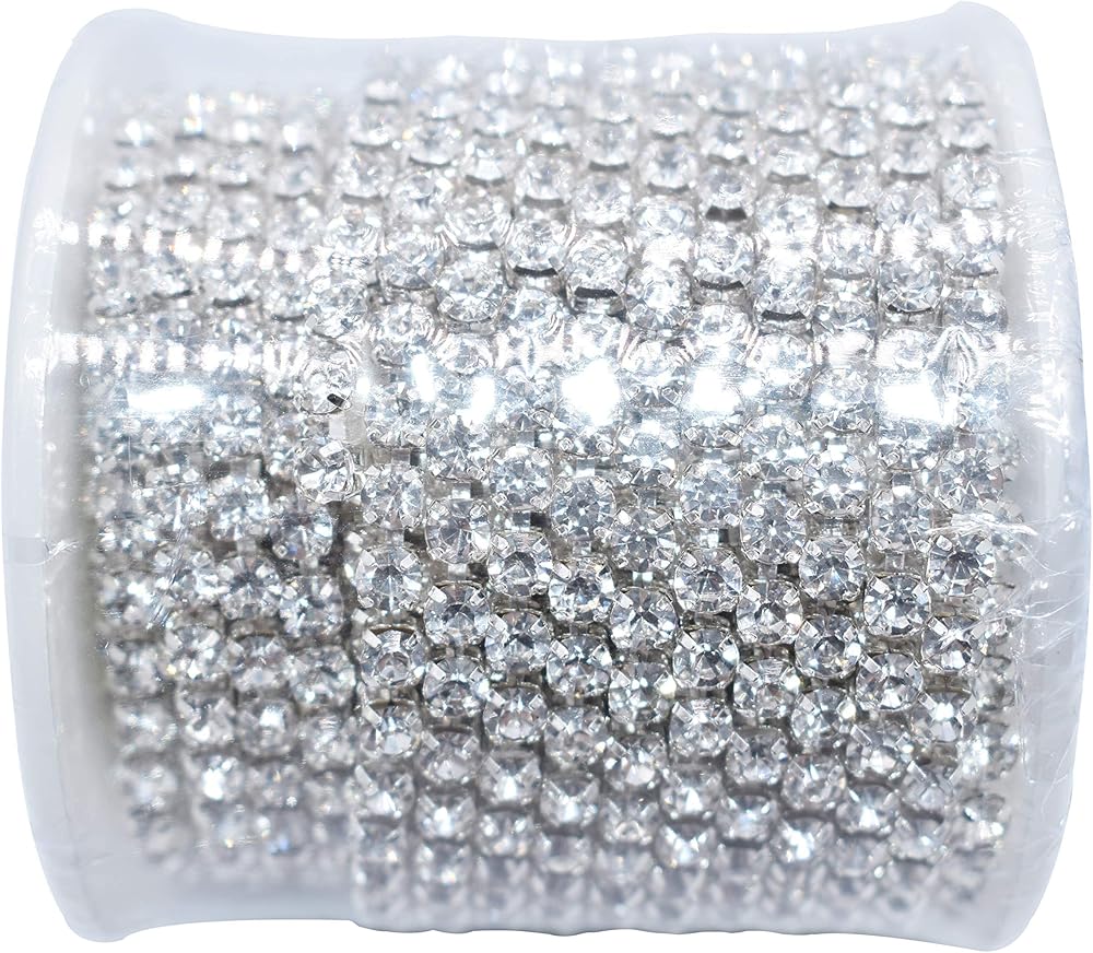 10 ياردات 2 مم من حجر الراين الكريستالي سلسلة ألماس، سلسلة زخرفية قريبة من حجر الراين الفضي من حجر الراين للحرف اليدوية، الخياطة، المجوهرات، ملابس الزفاف DIY الديكور (فضي)