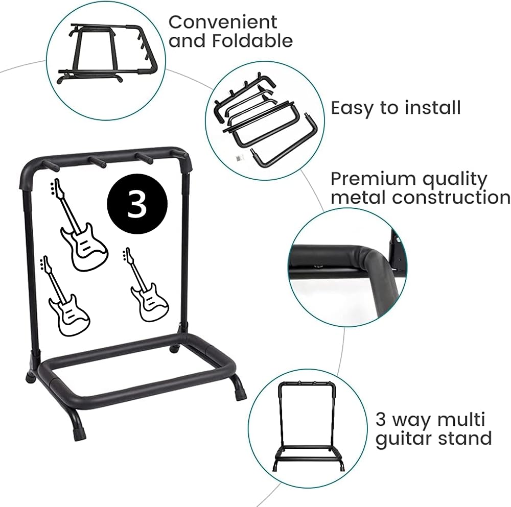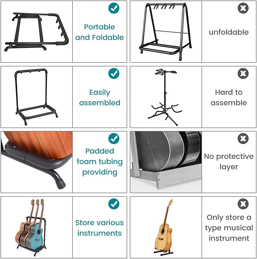 A universal floor guitar stand/rack for all types of guitars. Whether yours is a electric guitar; acoustic guitar, classical guitar, folk guitars; or even electric bass! These would fit snuggly in almost all scenarios you can think of! Whether it's for home use for jamming; placement of guitars during actual gigs anywhere ; practice studio requirements during recordings; or even act as a diplay function for one's overwhelming collection of prized guitars!