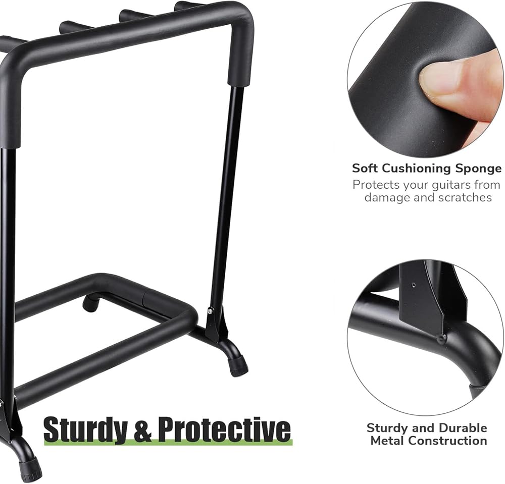 High quality thick iron frame. Strong, sturdy and light weight. Covered with solid durable foams that are not too thick for its appearance but yet sufficient enough to offer adequate buffer to the touching finishes of a guitar. The soft cushioning to the base and neck of your acoustic/electric guitars or bass underlines the importance we placed in getting the perfect optimal protection for your prized ones.