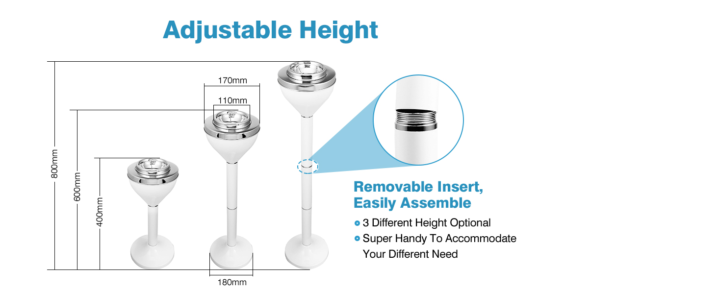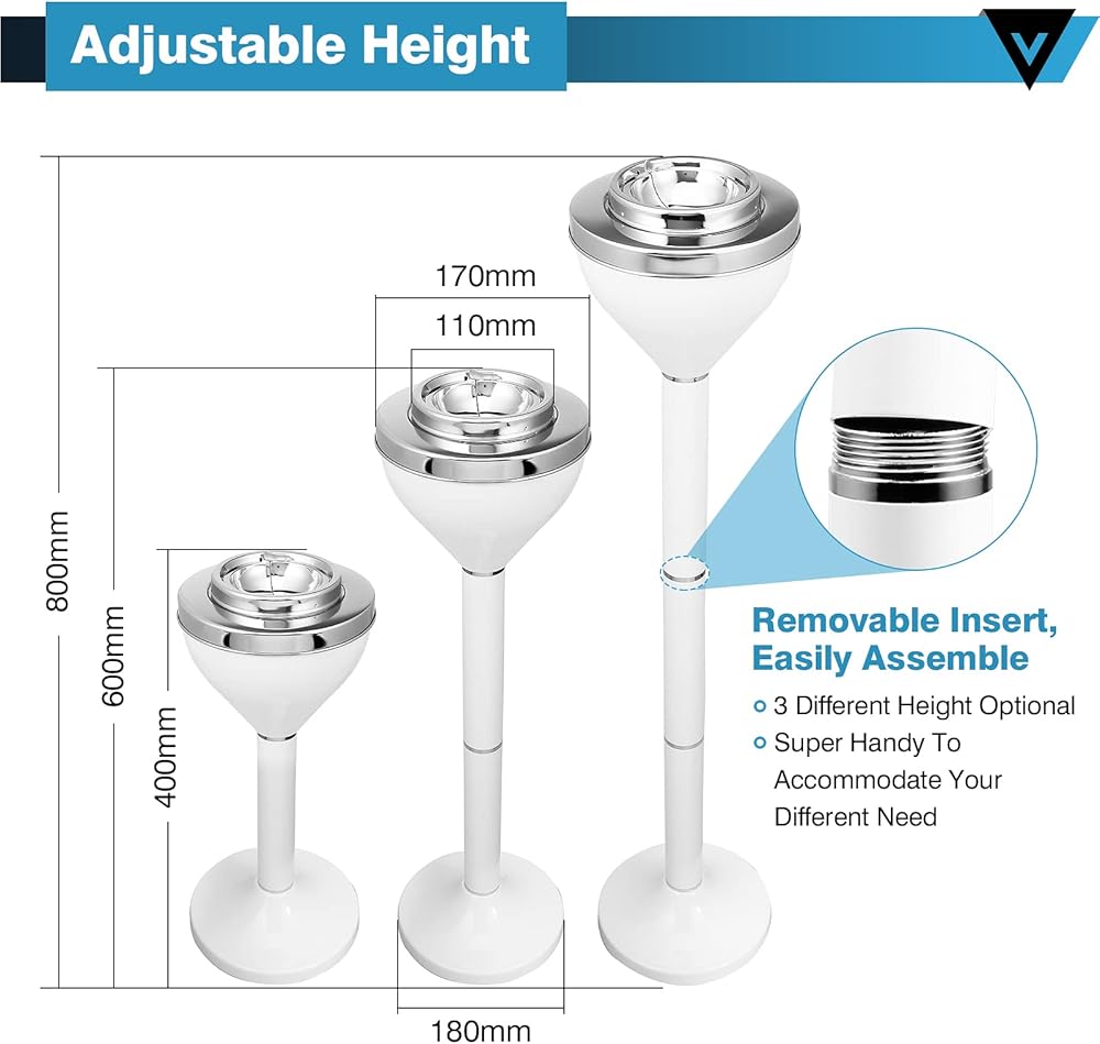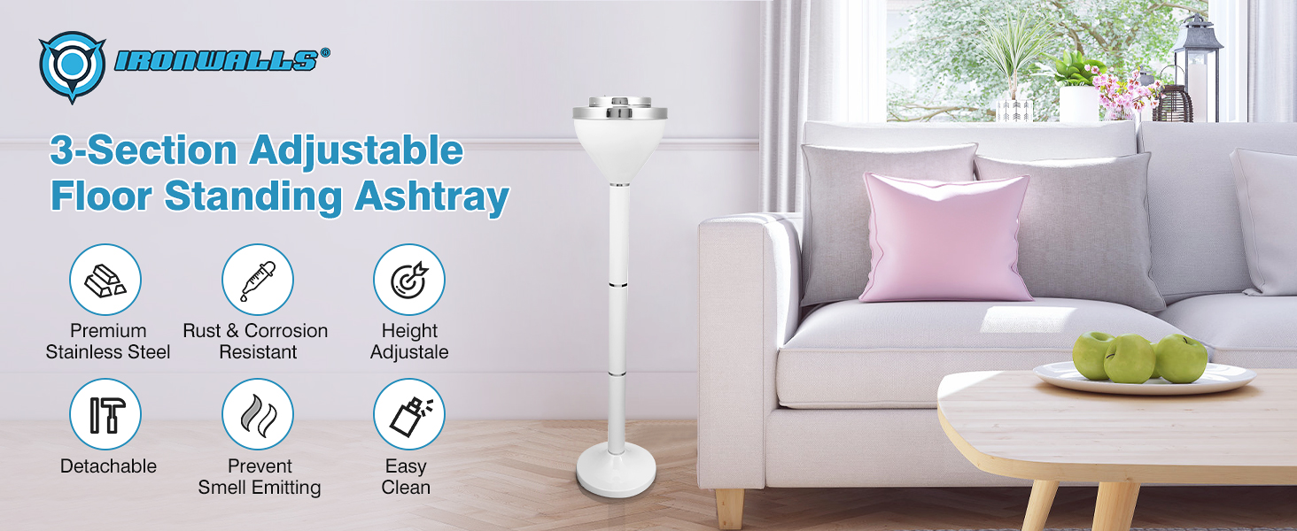 【3 مستويات ارتفاع قابلة للتعديل】مصممة بـ 3 قطع من الأعمدة القابلة للفصل، يوفر حامل منفضة السجائر الخارجي من IRONWALLS 31 بوصة، 23.6 بوصة، 15.7 بوصة ثلاثة ارتفاعات مختلفة اختيارية، مما يجعل من السهل وضعها واستخدامها في أي مكان، سواء كان منضدة البار، أو طاولة القهوة، أو كرسي الفناء، أو الأريكة. علاوة على ذلك، فإن جرة الرماد الموجودة داخل منافض السجائر قابلة للإزالة، ويمكن استخدامها على الطاولة بشكل فردي. منفضة سجائر واحدة يمكن أن تلبي معظم الاحتياجات.