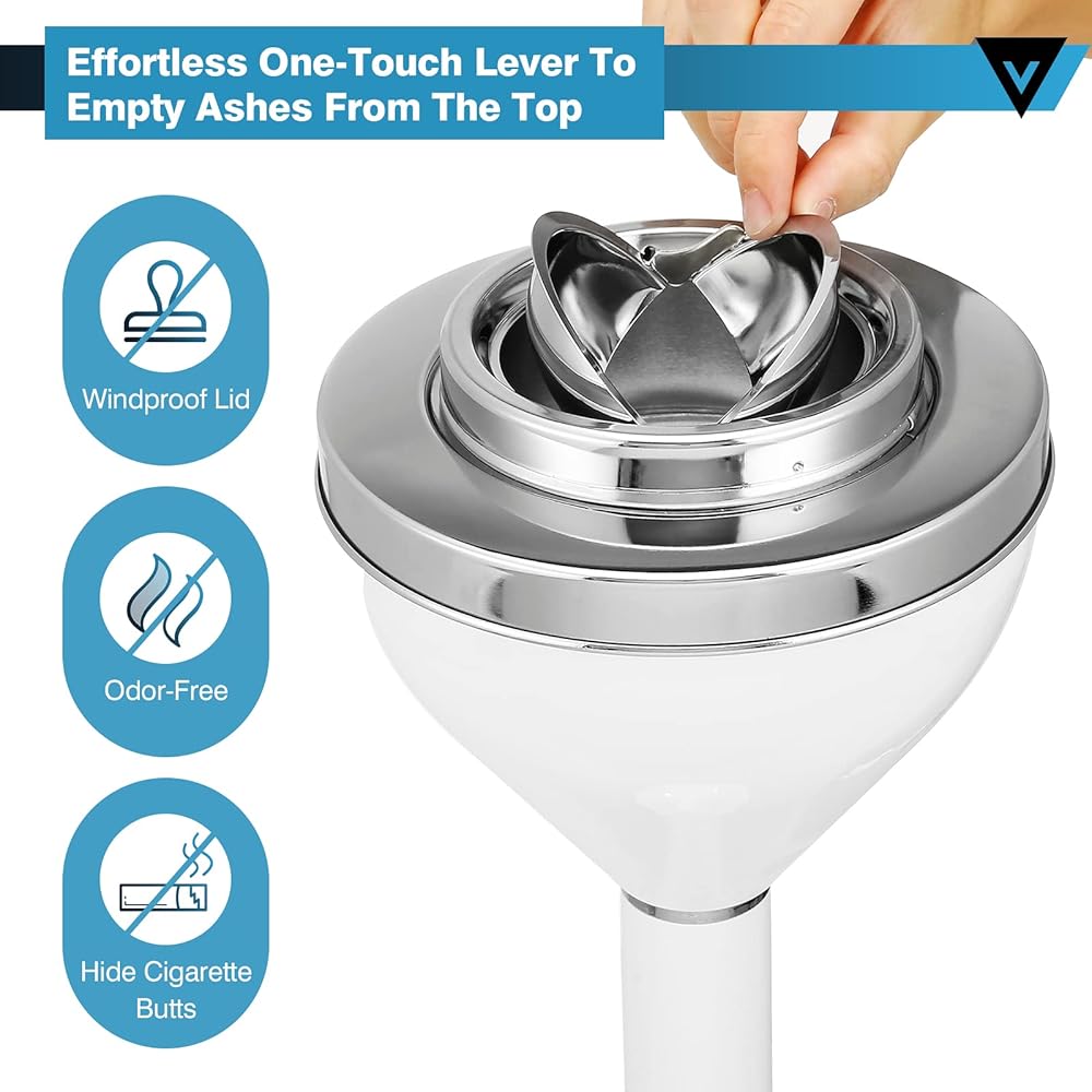 【تصميم مريح لسقوط الرماد للأسفل】تم تصميم منافض السجائر الخارجية هذه بزر بلمسة واحدة، وتفرغ الرماد من الأعلى دون عناء، وتمنع بشكل فعال رماد السجائر من الطيران والدخان من الانتشار.