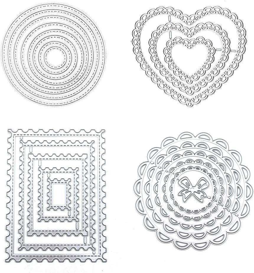 4 أشكال من قوالب القطع، 22 قطعة من قوالب القطع المعدنية من VEINARDYL، أداة نقش قالب استنسل من أجل DIY ألبوم القصاصات الورقية والبطاقات الورقية لتزيين الكيك - مستطيل، دائرة، قلب، زهرة دائرة