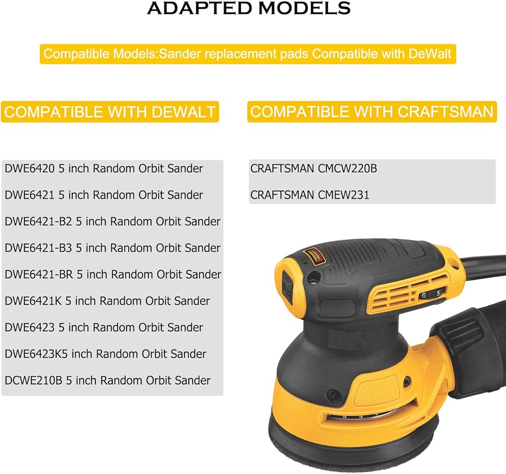 • 2 Pack Replacement sanding pad for DeWalt DWE64233 & N32907 compatible with DEWALT DWE6420, DWE6421, DWE6421-B2, DWE6421-B3, DWE6421-BR, DWE6421K, DWE6423, DWE6423K, DCWE210B random orbital sander