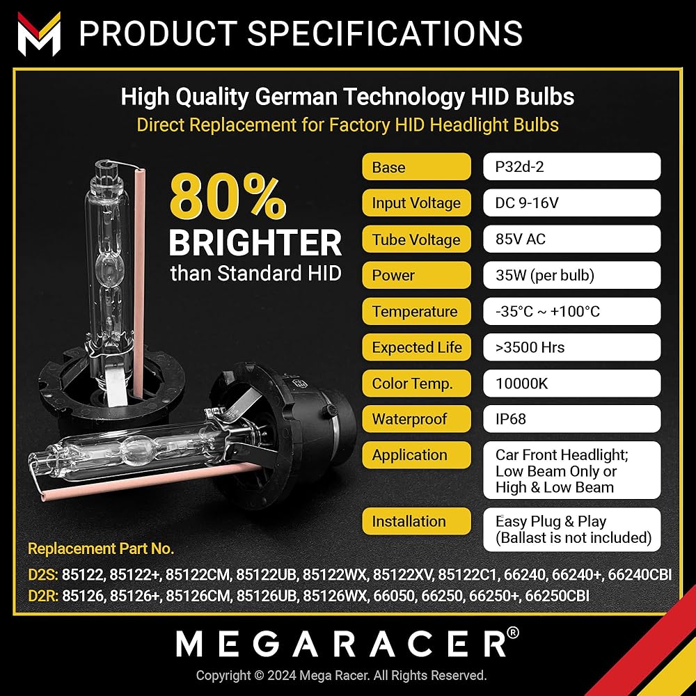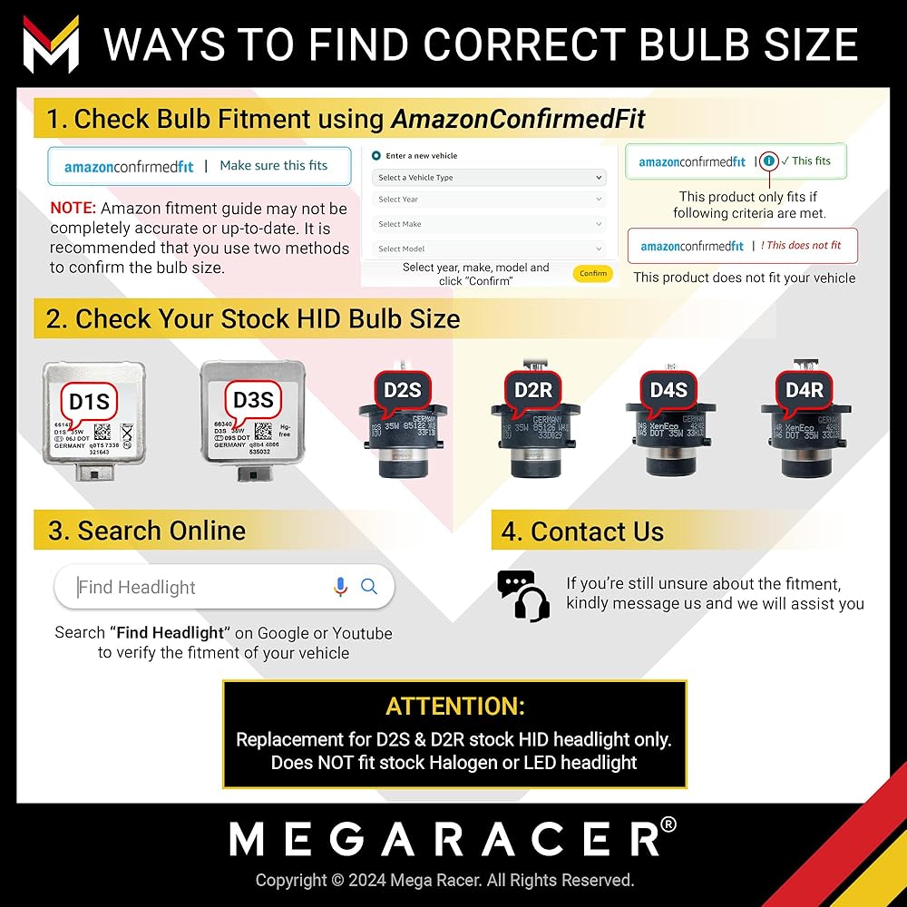 ✅ تحذير - الاستبدال مخصص للمصابيح الأمامية HID فقط. لا يناسب إذا كانت سيارتك تحتوي على مصباح هالوجين أمامي. سيعمل هذا بشكل مثالي في السيارات المزودة بمصباح أمامي D2S وD2C وD2R.
