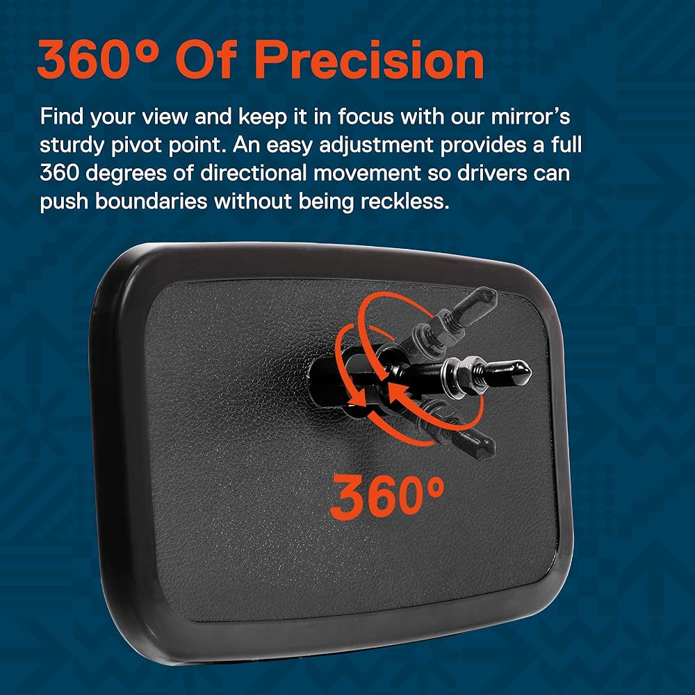 دقة 360 درجة - اعثر على وجهة نظرك واحتفظ بها في بؤرة التركيز من خلال النقطة المحورية القوية للمرآة. يوفر التعديل السهل حركة اتجاهية كاملة بزاوية 360 درجة حتى يتمكن السائقون من تجاوز الحدود دون التهور.