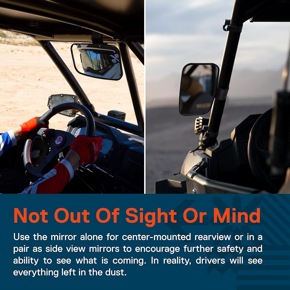 ليست بعيدة عن الأنظار أو العقل - استخدم المرآة بمفردها للرؤية الخلفية المثبتة في المنتصف أو كزوج من المرايا الجانبية لتشجيع المزيد من الأمان والقدرة على رؤية ما هو قادم. في الواقع، سيرى السائقون كل شيء بقي وسط الغبار.