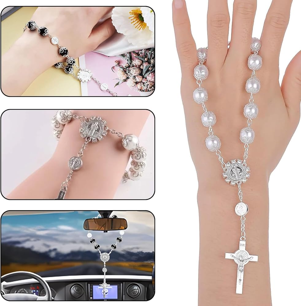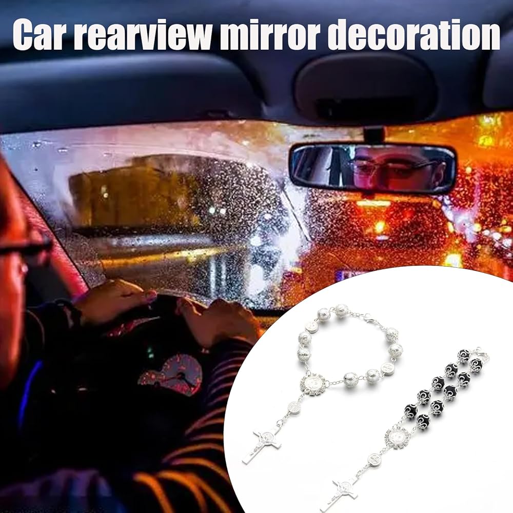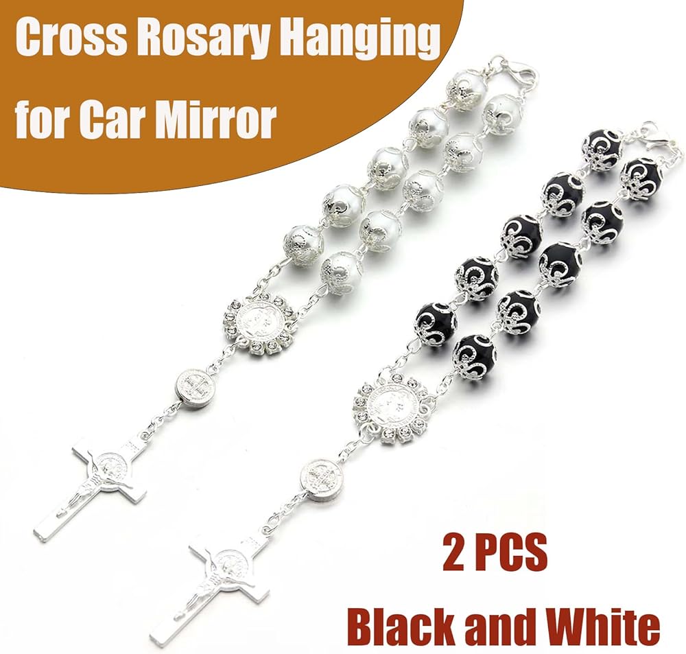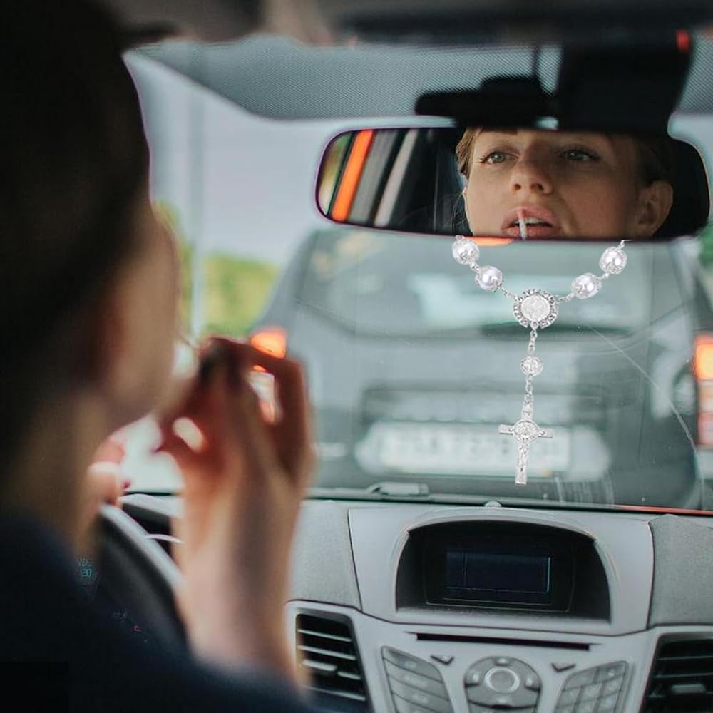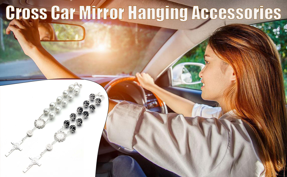 مسبحة سيارة عالية الجودة: زينة مرآة السيارة هذه مصنوعة من سبيكة وزجاج عالي الجودة، متينة، لا تبهت، لا تتكسر، سطح أملس، لن تخدش يديك. تم تصميم قلادة السيارة المسبحة باللونين الأبيض والفضي، مع صناعة متقنة وسطح لامع.