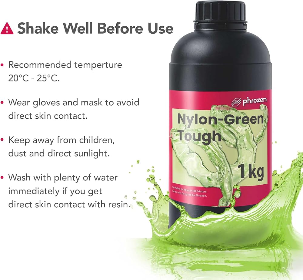 راتنج متين من النايلون الأخضر المجمد ذو مقاومة عالية، مثالي لإنشاء مطبوعات ثلاثية الأبعاد عملية، لا ينكسر بسهولة (1 كجم)