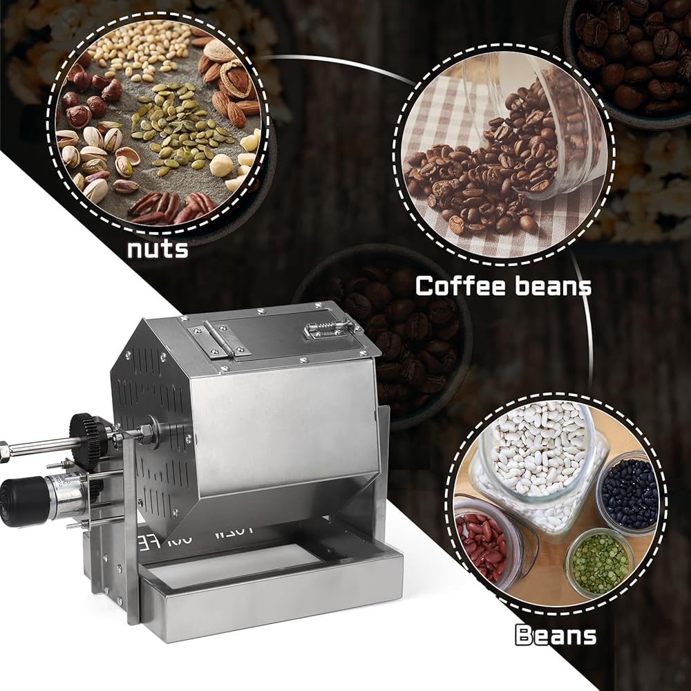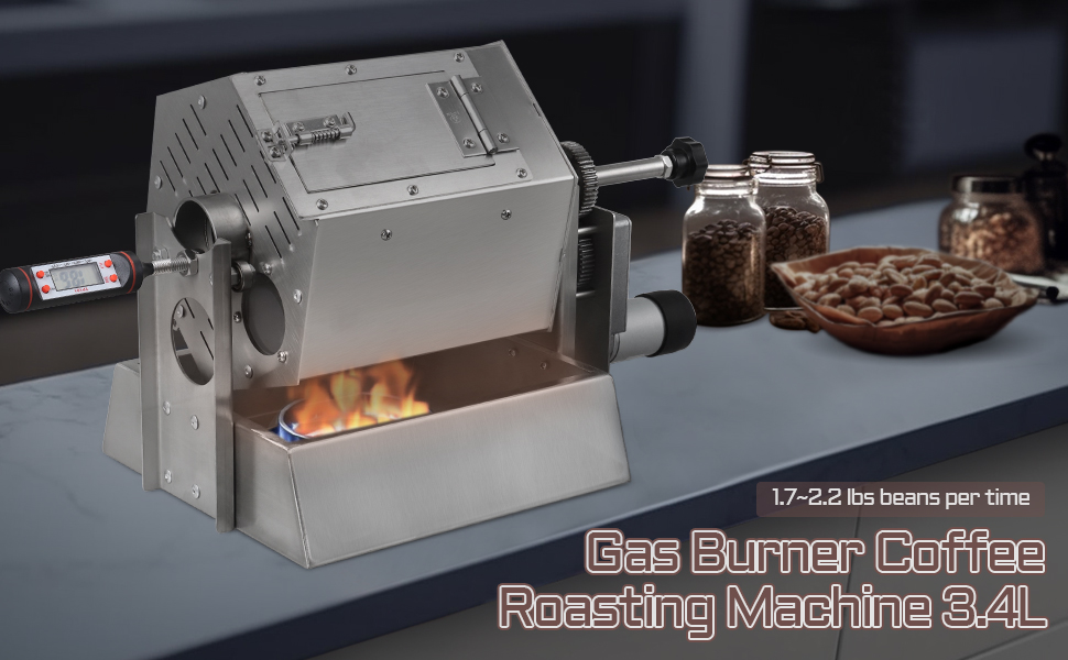 【سعة كبيرة 3.4 لتر】يمكن لمحمصة حبوب القهوة من نوع الطبل أن تحميص حوالي 0.8 إلى 1 كجم (1.7 إلى 2.2 رطل)) من حبوب القهوة في كل مرة.