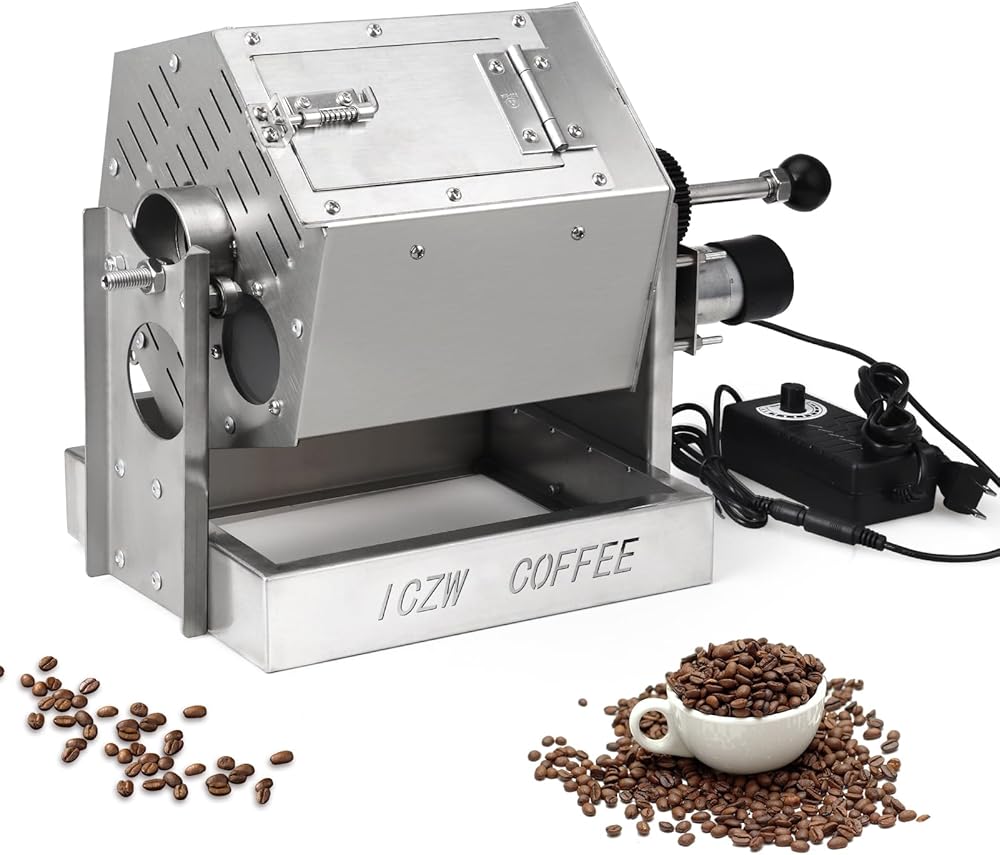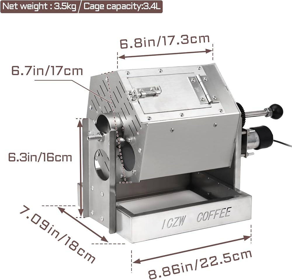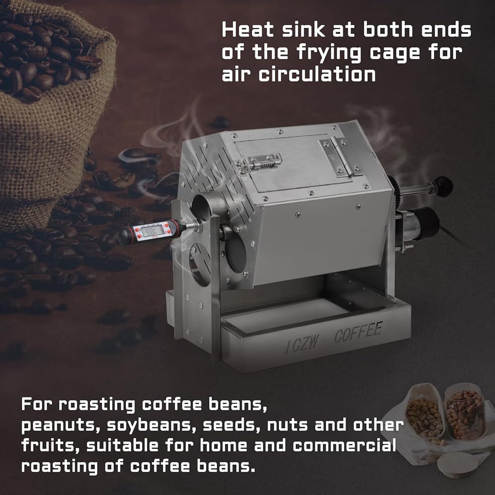 【متينة】محمصة القهوة مصنوعة بالكامل من الفولاذ المقاوم للصدأ. إنها متينة وسهلة التنظيف