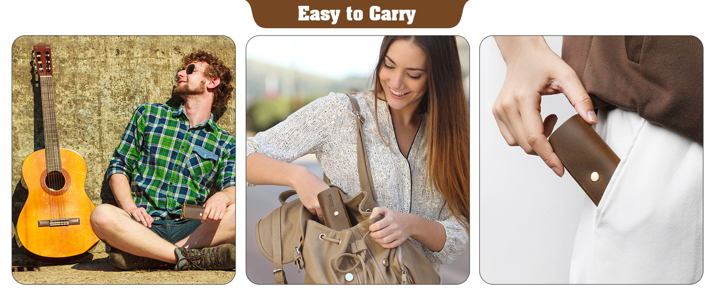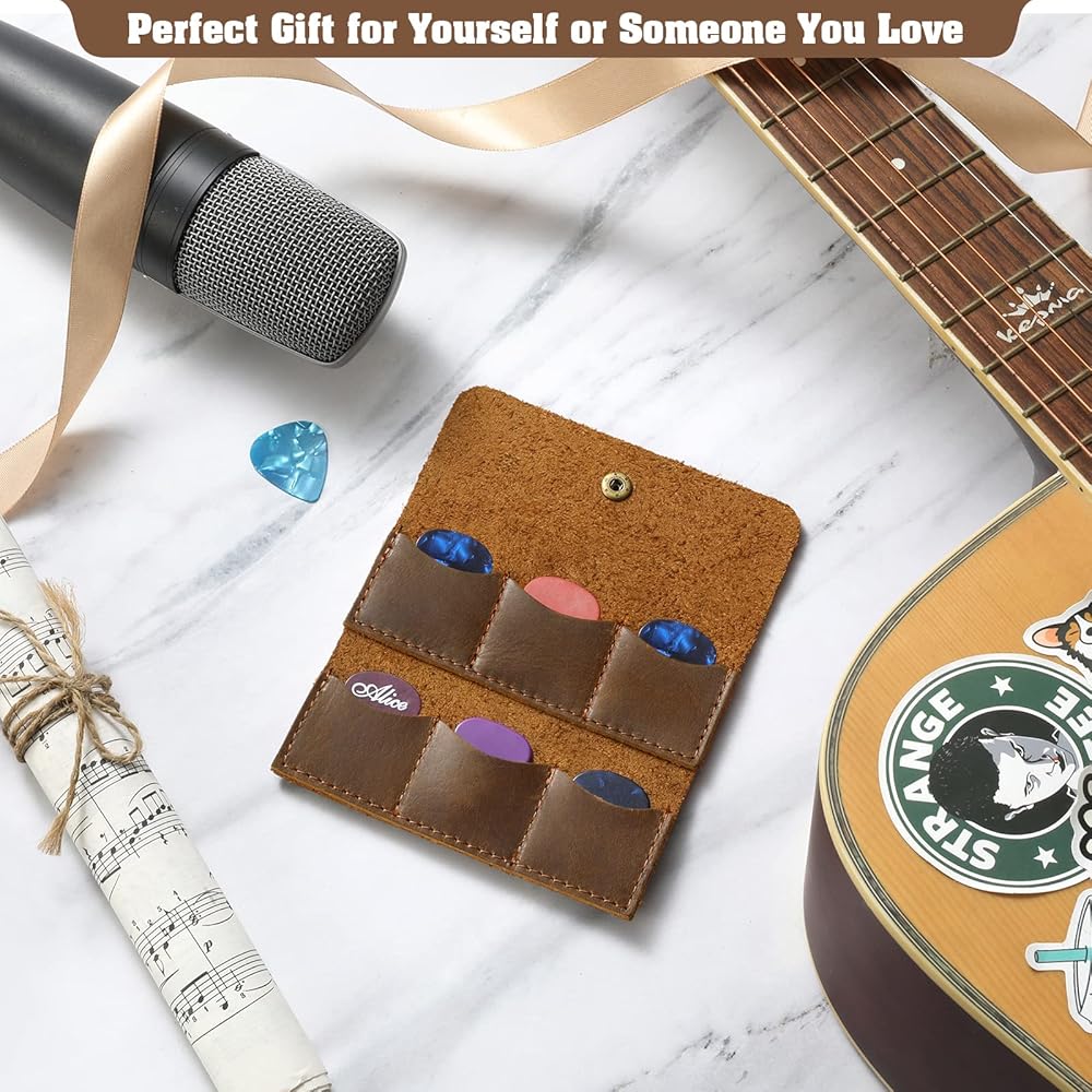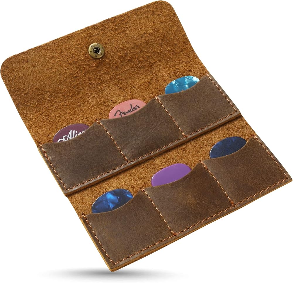 حامل غيتار جلدي - أعواد الجيتار عبارة عن حاويات جلدية صغيرة تحمل أعواد الجيتار التي توفر طريقة مريحة وأنيقة لتخزين ونقل أعواد الجيتار مع حمايتها أيضًا من التلف أو الفقد، مما يوفر مساحة تخزين مثالية لك أثناء الأداء.