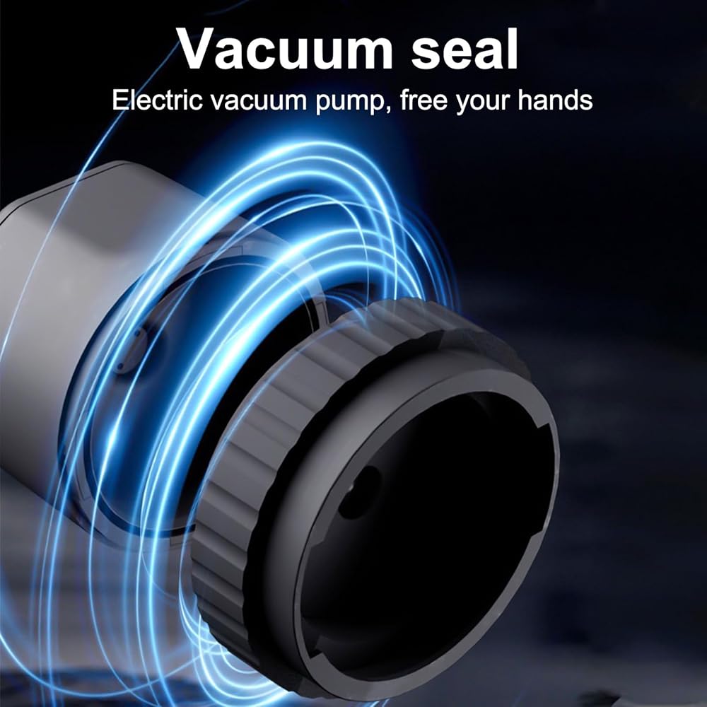 قابلة لإعادة الشحن عبر USB من النوع C: تتميز سدادة البرطمانات الكهربائية لدينا، والتي تتميز عن مضخات التفريغ التقليدية، بقدرة شفط قوية بشكل لا يصدق، وأتمتة كاملة، وسرعة، وراحة، مما يجعلها عملية للغاية. مع تصميم شحن USB من النوع C، فإنه يعمل لاسلكيًا وهو محمول وخفيف الوزن، ويشغل مساحة صغيرة. وهذا يسمح لك بحملها دون عناء أثناء السفر أو النزهات، مما يسهل الحفاظ عليها وإغلاقها للحفاظ على أغراضك طازجة.