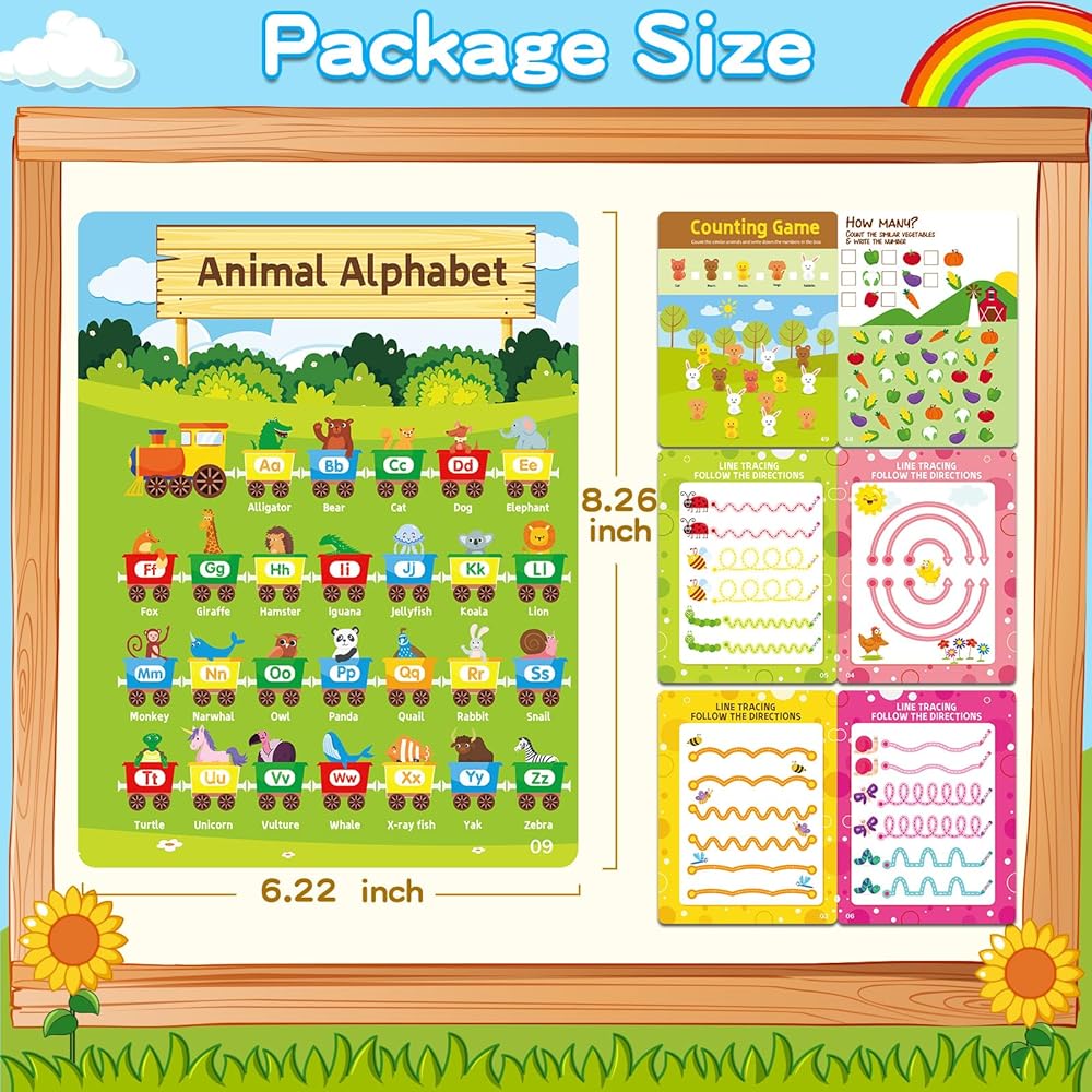 • مصنف تتبع الأطفال الصغار: مصمم للتطور المعرفي المبكر، والتفكير الإبداعي، والقراءة، والفهم، والتركيز، والتنسيق بين اليد والعين. مثالي للأطفال، بما في ذلك أولئك الذين يعانون من التوحد وتأخر الكلام، يركز هذا المصنف على الحروف والحيوانات والكلمات المرئية والأرقام والجمع والطرح والأشكال. تعد السلامة أمرًا بالغ الأهمية مع منتجاتنا من الورق المقوى والمواد المقاومة للماء والمقاومة للتمزق، مما يضمن تجربة تعليمية آمنة.