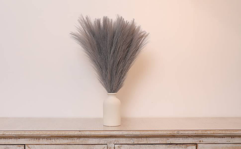 تحتوي هذه المجموعة على 12 سيقان من عشب البامبا الاصطناعي الصغير المنفوش باللون الرمادي، يبلغ طول كل ساق 17.7 سم، والمزهرية غير متضمنة.