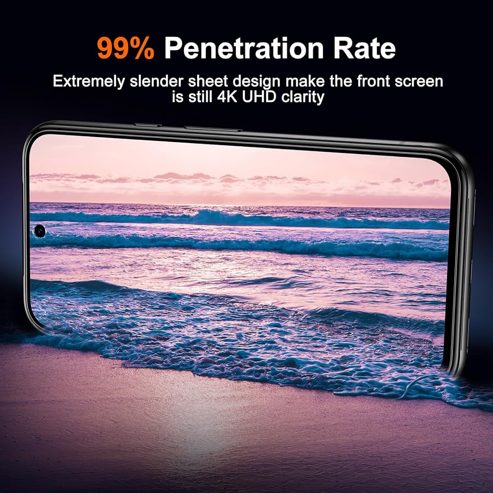 واقي شاشة UniqueMe for Google Pixel 8a، [فتح بصمة الإصبع المتوافق] قطعتان من واقي عدسة الكاميرا المقاوم للكسر من الدرجة العسكرية وقطعتان من الزجاج المقسى 9H لبكسل 8a