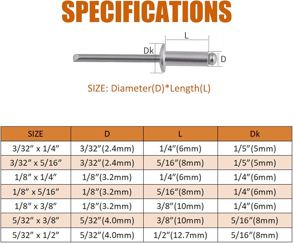 - ✅المقاس - 20 قطعة 3/32 بوصة × 1/4 بوصة، 20 قطعة 3/32 بوصة × 5/16 بوصة، 20 قطعة 1/8 بوصة × 1/4 بوصة، 25 قطعة 1/8 بوصة × 5/16 بوصة، 25 قطعة 1/ 8 بوصة × 3/8 بوصة، 20 قطعة 5/32 بوصة × 3/8 بوصة، 20 قطعة 5/32 بوصة × 1/2 بوصة.