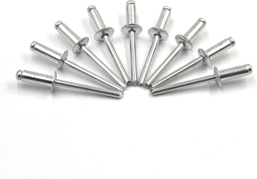ISPINNER 150 قطعة 7 مقاسات من المسامير العمياء المصنوعة من الألومنيوم، مجموعة متنوعة من المسامير البوب 3/32 بوصة، 1/8 بوصة، 5/32 بوصة (فضي)