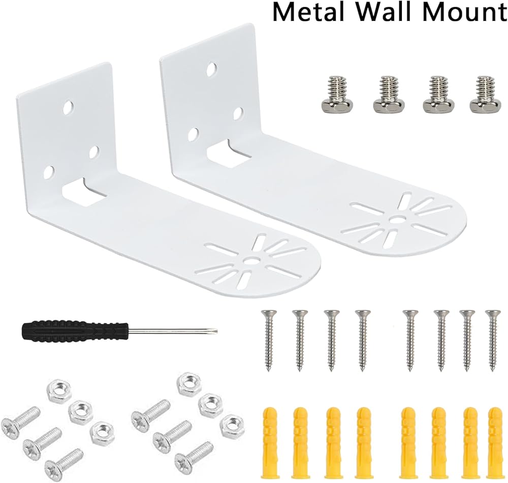 حامل فريد على شكل حرف L: 2 × دعامة حائط للكاميرا، 1 × مفك براغي، 4 × 1/4 براغي، 8 × براغي حائط، 8 × مقابس حائط، 6 × براغي، 6 × صواميل لولبية. إذا كان لديك أي أسئلة، فلا تتردد في الاتصال بنا.