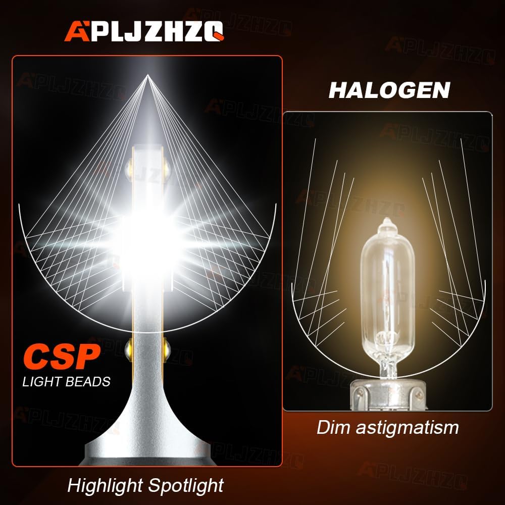 • إضاءة أوسع وأبعد - مجموعة مصابيح الرأس APLJZHZQ مدمجة في أعلى 3570 شريحة CSP، 20,000 لومن لكل زوج. تتميز بإخراج أكثر سطوعًا ونمط شعاع، وتوفر نطاق إضاءة أكبر من الرقائق الأخرى. تسمح لك برؤية أوسع وأبعد، بدون بقعة سوداء أو خافتة، دون عمى المركبات القادمة. رؤية أكثر وضوحًا أثناء القيادة ليلاً، مما يجعل القيادة أكثر أمانًا على الطرق الريفية أو الطرق السريعة.