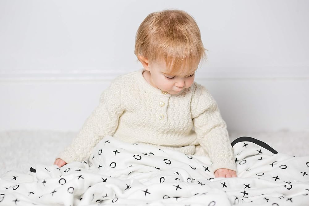Warm and cozy for play, cuddles, and bed time. This beautifully soft quilted blanket is perfect for your little one to use throughout their childhood. Made with four layers of deluxe muslin with jersey trim. Multipurpose: use in the crib, stroller, backdrop for Valentines, and more!