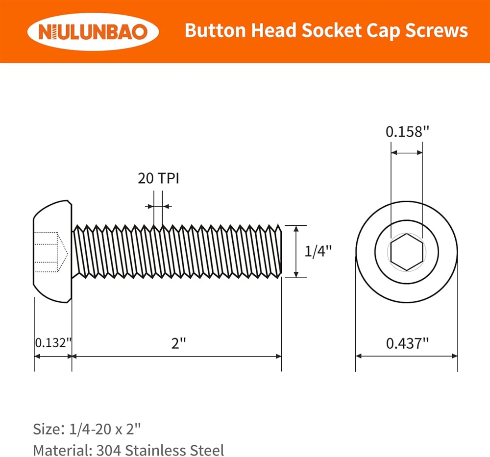 Package Included: 25 PCS Button Head Socket Cap Screws (1/4-20 x 2")