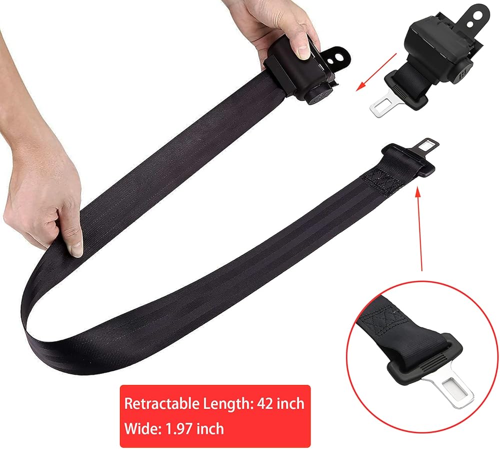 Club car seat belts are retractable. Retractable length 42 inch long which can fit most users well. The seat belt kit for golf cart is convenient and fast to adjust the length as you like.