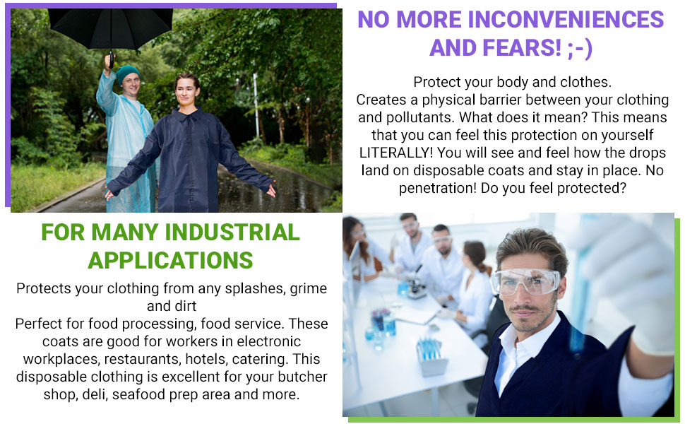 استخدام متعدد الاستخدامات لجميع المحترفين. معطف المختبر المقاوم للسوائل ضروري لأي شخص في المجال الطبي، من نوبات العيادة إلى مدرسة الطبيب البيطري. كما أنها مناسبة تمامًا لمختبرات الكيمياء الجامعية أو أي مكان احترافي حيث تكون الطبقة الواقية ضرورية.