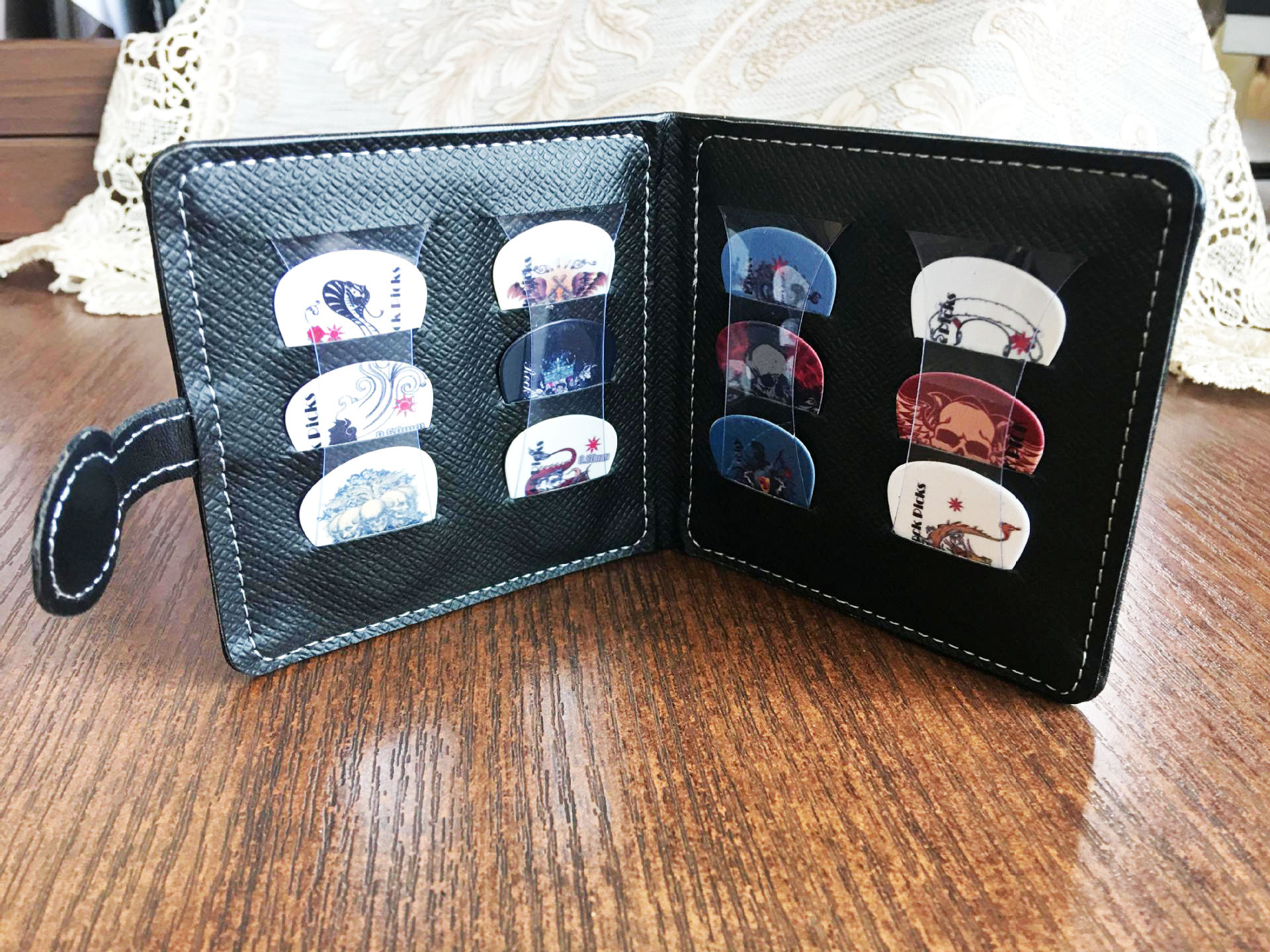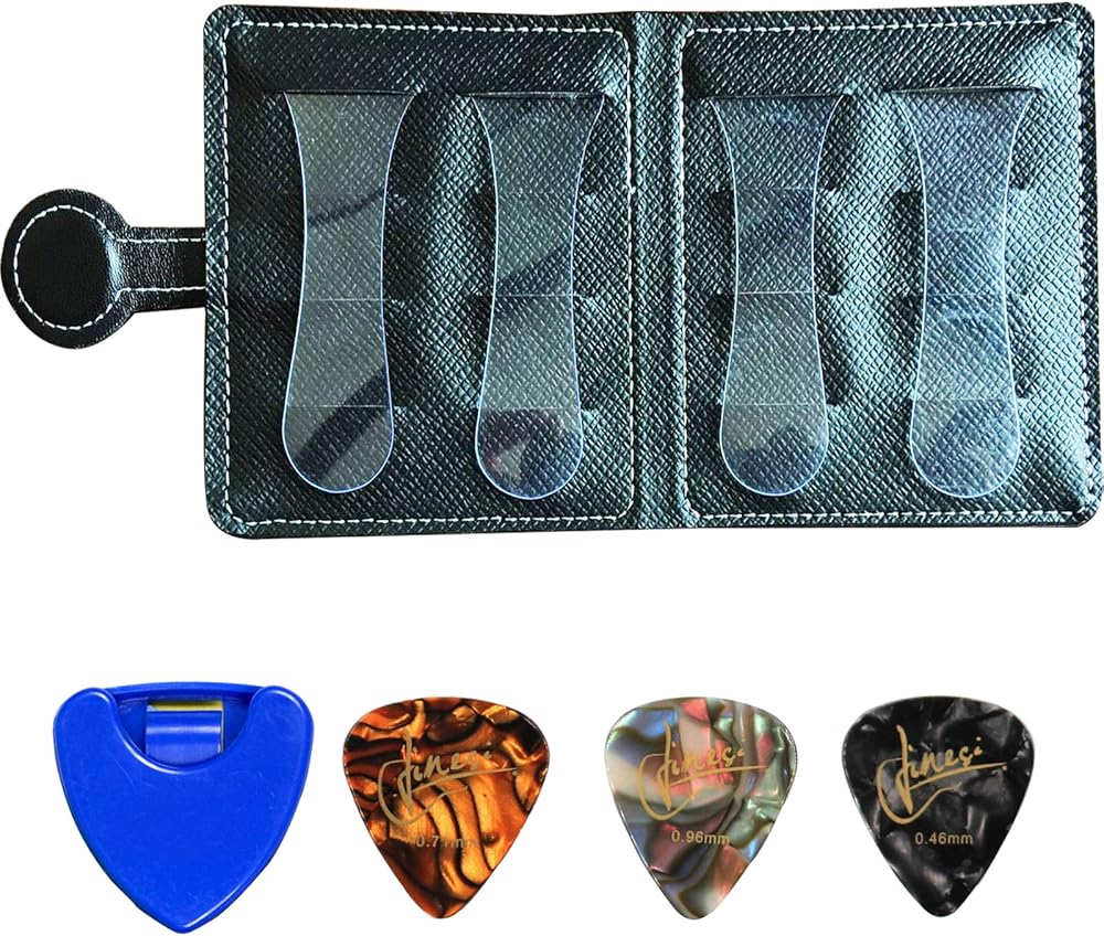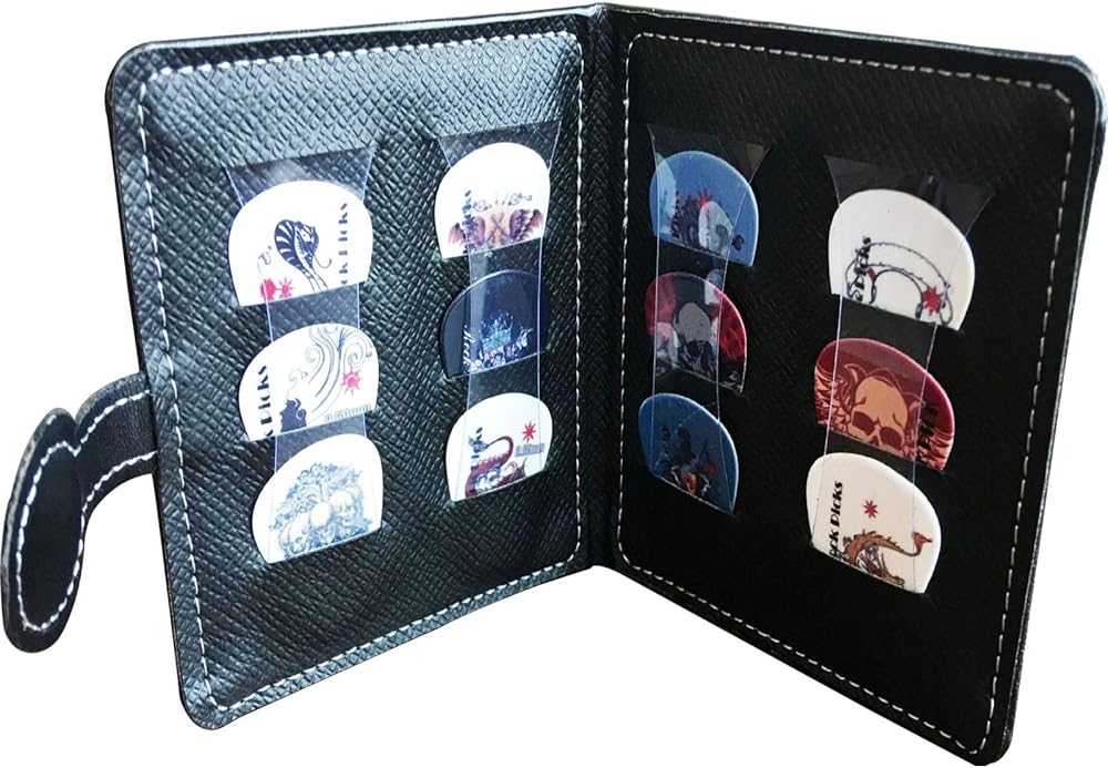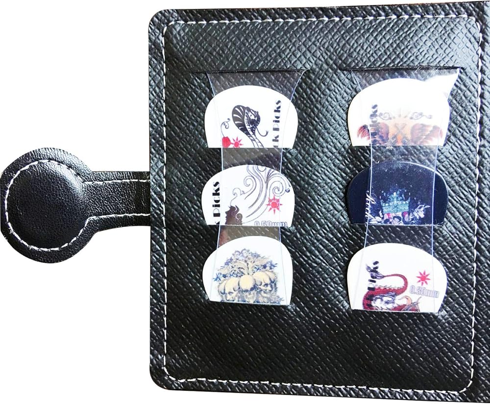 【حماية آمنة】 ♫ يمكن لحقيبة ريشة الغيتار أن تحمل 12 ريشة جيتار بسماكات مختلفة، ويمكن للكتلة البلاستيكية الداخلية الإضافية حجب الأعواد للحفاظ على الأعواد منظمة.