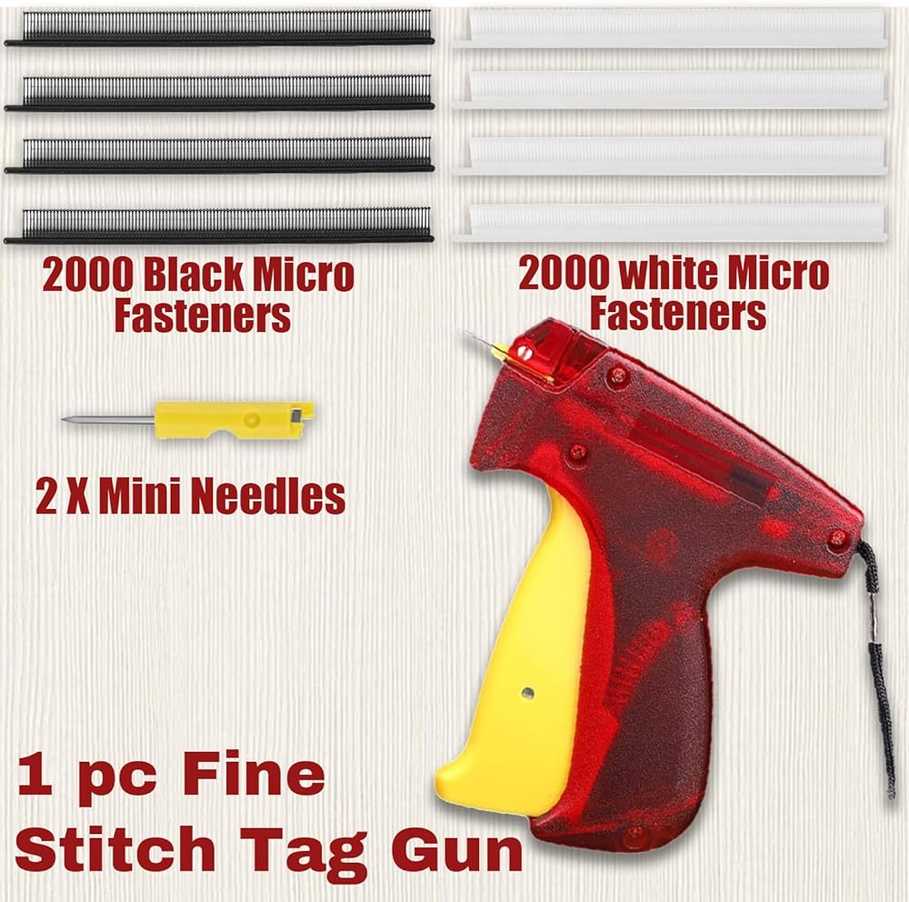 مسدس وضع العلامات للملابس، مسدس غرز صغير للملابس، مسدس غرز دقيقة لخياطة اللحف، مجموعة أدوات خياطة الغرز السريعة مع إبرتين، 2000 مثبتات صغيرة سوداء و2000 بيضاء