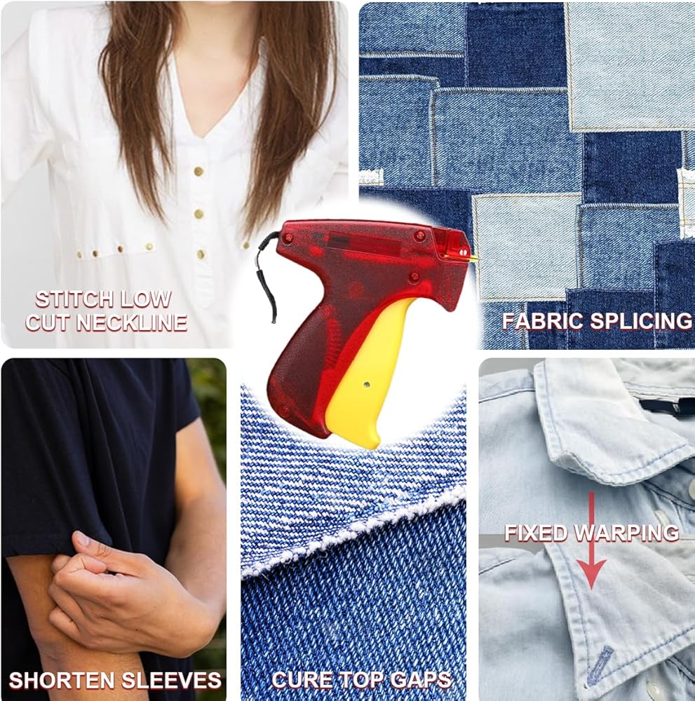 【استخدامات واسعة】مسدس تحديد الملابس هذا له استخدامات متعددة. لا يمكن استخدامه للإصلاحات المؤقتة فحسب، بل يمكن استخدامه أيضًا لتثبيت الملصقات. يمكنك استخدام مجموعة مسدسات الخياطة لربط الأزرار وإغلاق اللحامات وتأمين خطوط العنق العميقة وتعديل الحواف والمزيد. مناسبة للملابس والحقائب وأغطية اللحاف والجوارب والحقائب وما إلى ذلك.