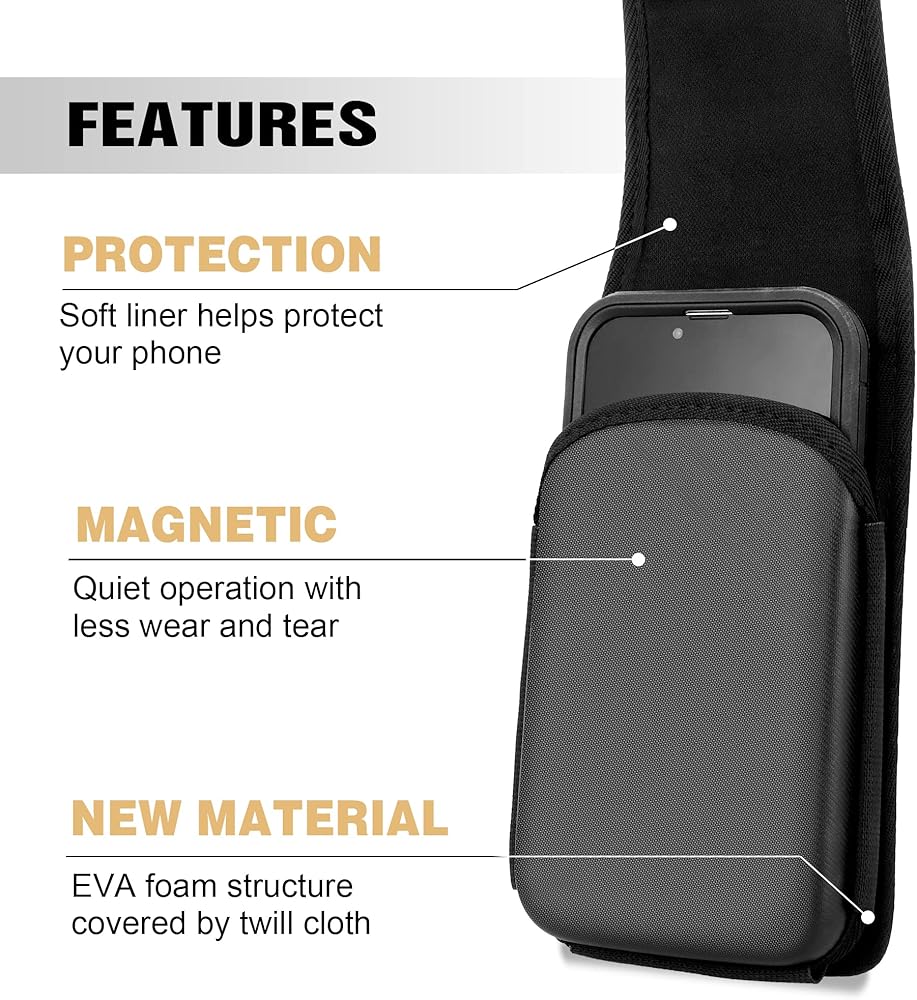 Made with EVA foam and covered with scratch resistant twill fabric, this holster is perfect for users to take it outdoor, hiking, sporting, construction site, etc. It is a great addition to your phone accessory collection and makes an excellent gift to others.