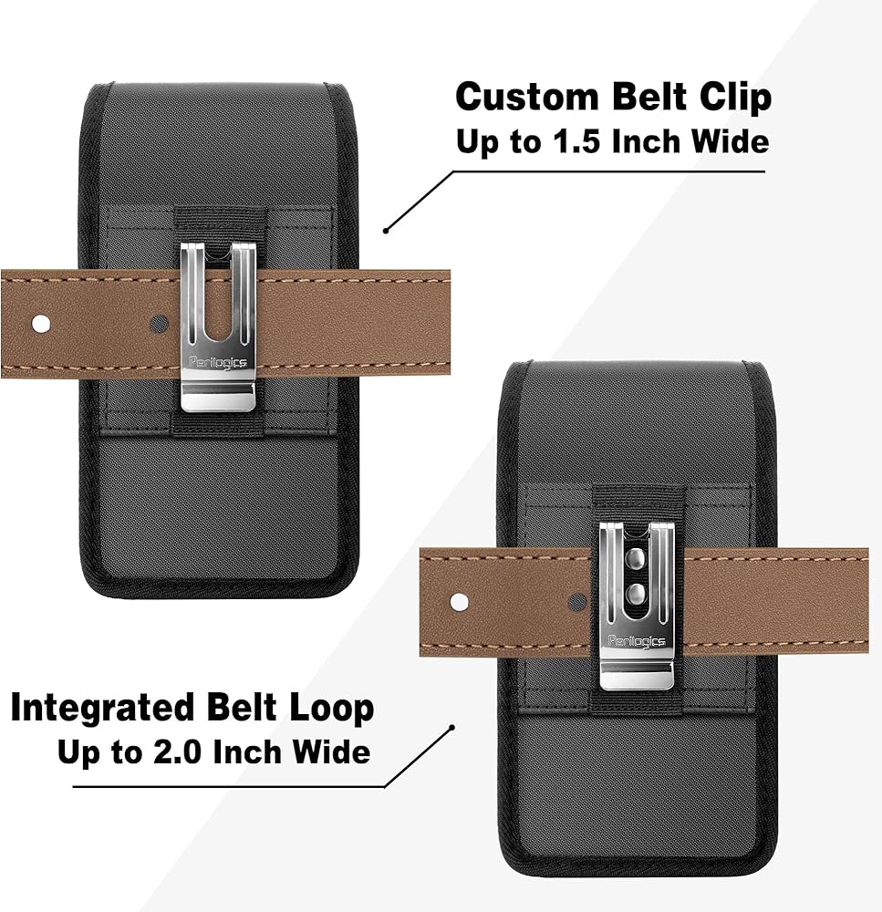 • CUSTOM Perilogics metal belt clip with dual rivets offer a 90 degree fold to quickly install on belt and prevent accidental fall off.