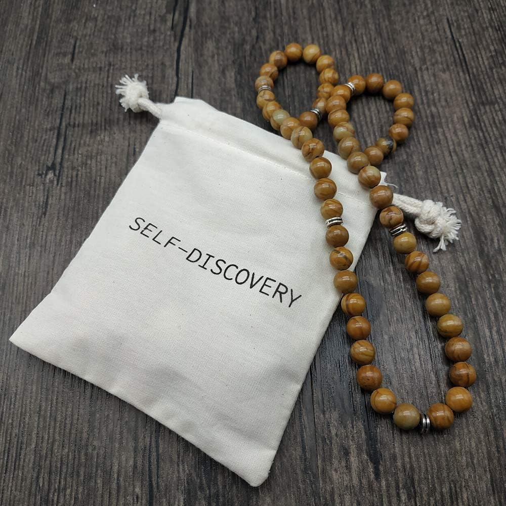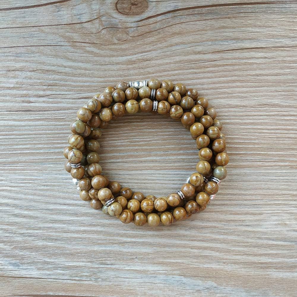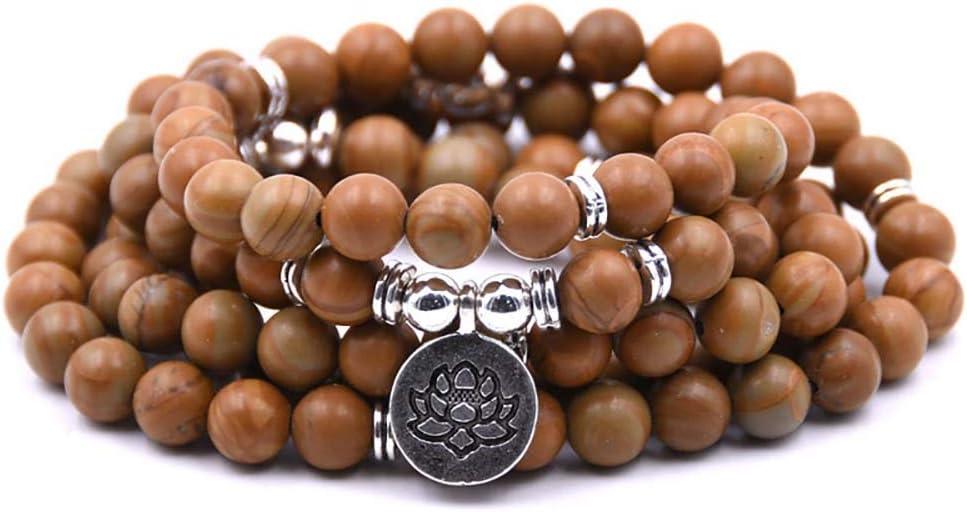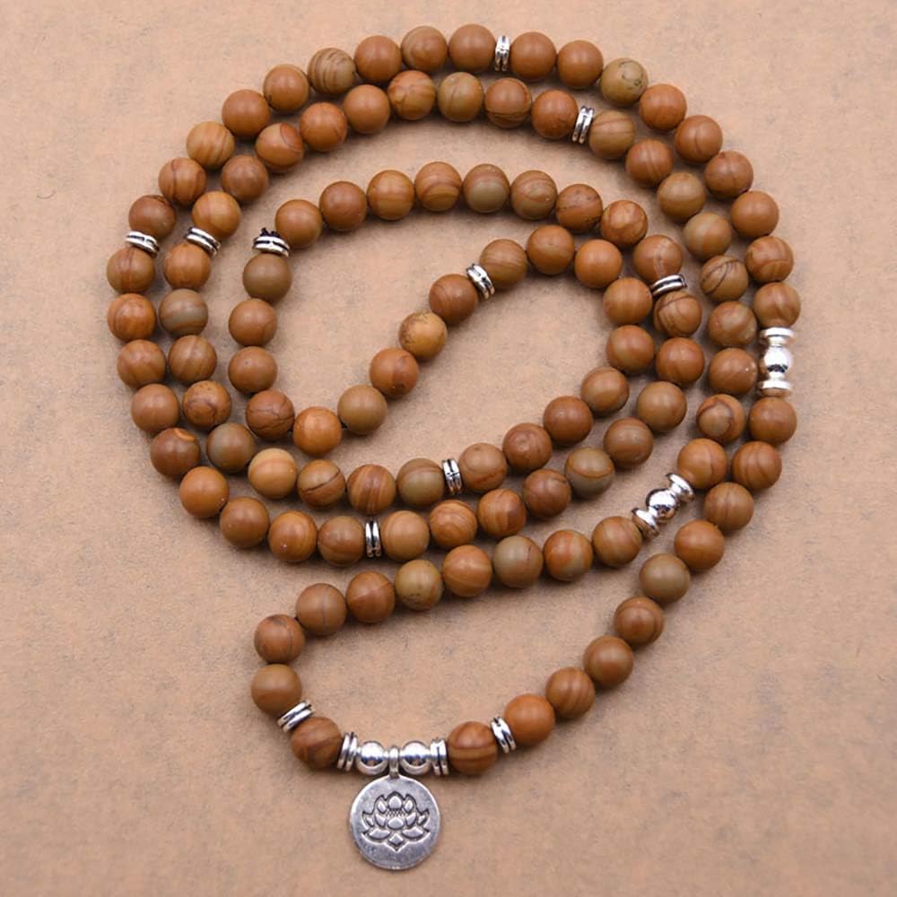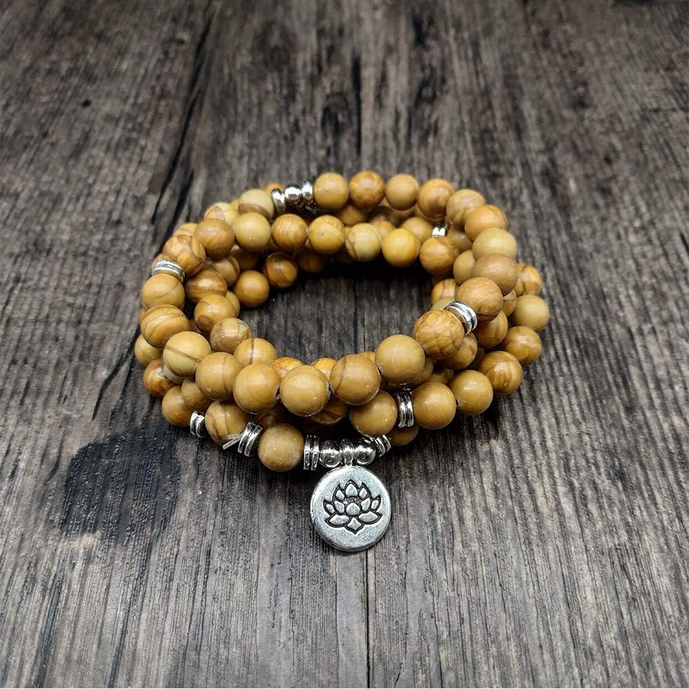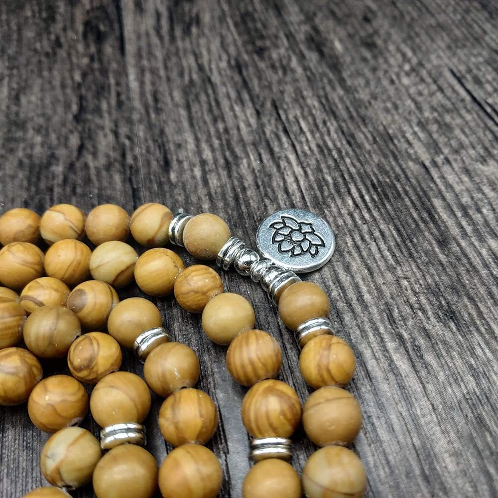 سوار يوغا مالا من الخرز الطبيعي 108 مع سحر اللوتس (حبة خشبية)