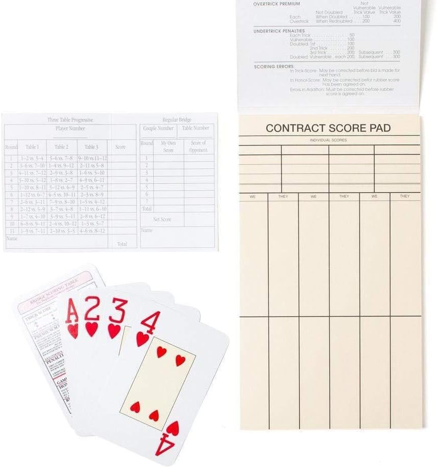 Gift set includes a double deck of playing cards and 2 score pads and comes packaged in a gold box.