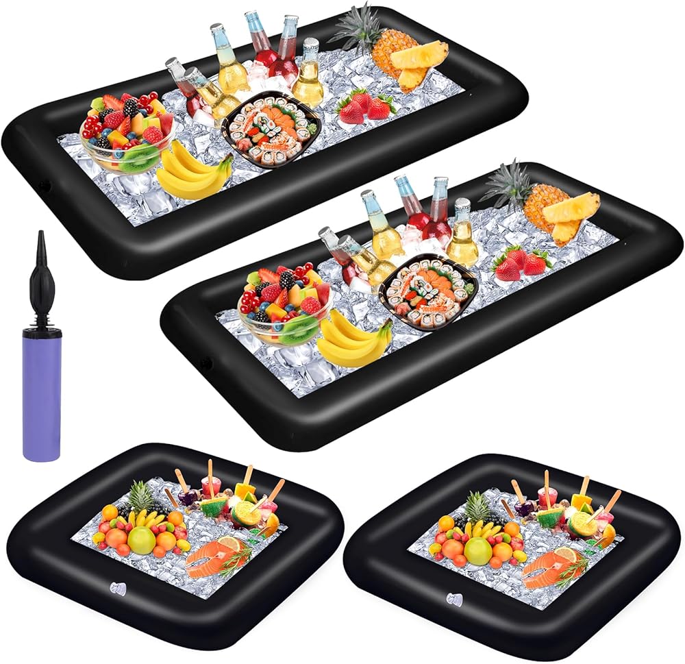 • ستحصل على - مجموعة من 4 قطع من ألواح التقديم القابلة للنفخ، كمية كافية لك لترتيب حفلة مبهجة ورائعة. قالب تقديم الثلج القابل للنفخ فسيح بما يكفي لحمل العديد من الأطباق والأطباق والمشروبات والعلب. يمكنك ملؤها بالثلج للحفاظ على الطعام والشراب باردًا وطازجًا لساعات والاستمتاع بحفلتك. الحجم 51.2 × 25.6 × 3.9 بوصة 2 عبوة + 23.6 × 23.6 × 3.0 بوصة 2 عبوة