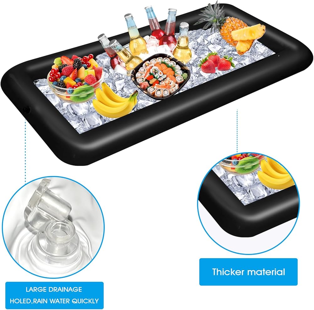 • إمدادات رائعة للحفلات - يُعد بار تقديم الثلج القابل للنفخ إضافة ممتازة لحفلات حمام السباحة الصيفية ولم شمل الأسرة في الداخل والخارج. ضع بعض الطعام اللذيذ فيه وأبهر ضيوفك!