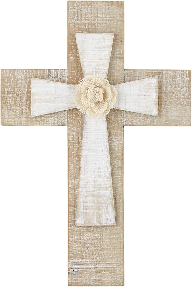 Rustic whitewash finished layered crosses with a burlap flower in center. Cross measures 12-inches high by approximately 8-inches wide and includes a sawtooth hanger. An ideal gift for family and friends or even yourself for birthdays, weddings, Christmas and more. Wonderful addition to a wall collage or to display alone on the wall, mantle or above a table or buffet. Look for additional home decor from Faithworks at Creative Brands. Faithworks at Creative Brands offers everyday items and gifts with uplifting messages to feed the soul. Creative Brands focuses on gifts that will be a source of inspiration, fun, and encouragement to all with an emphasis on quality, whether for special occasions, social expression, or just for fun.