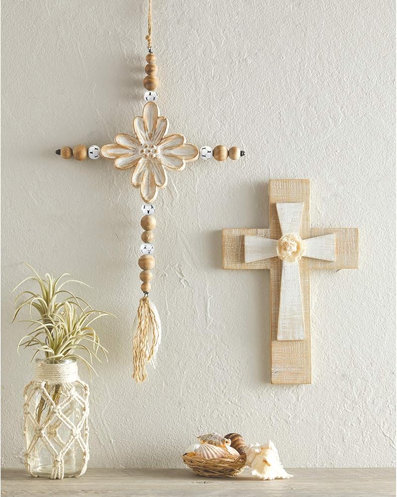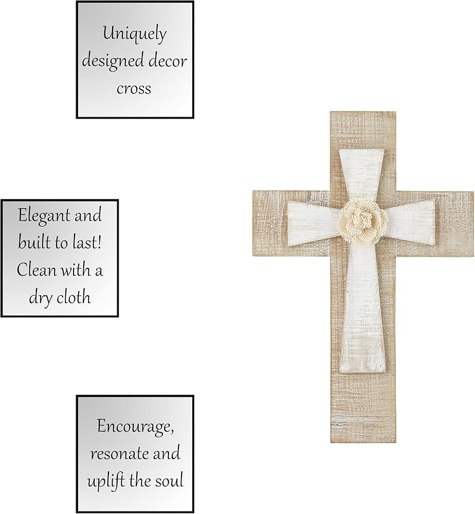 • WOODEN WALL CROSS: Rustic whitewash finish lends a warm organic feel; includes sawtooth hanger