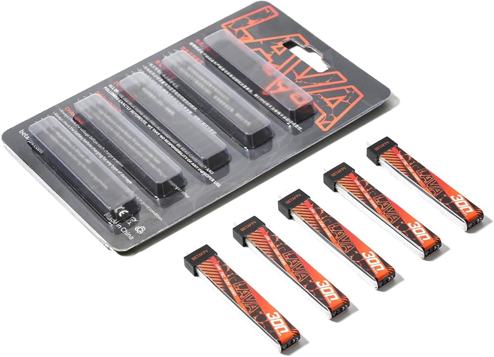 BETAFPV 5pcs LAVA 1S 300mAh Lipo Battery 3.8V 75C LiHV Battery with BT2.0 Connector Compatible for 1S FPV Tiny Whoop Drone Quadcopter like Cetus, Meteor65, Meteor65 Pro 1S Brushless Drones