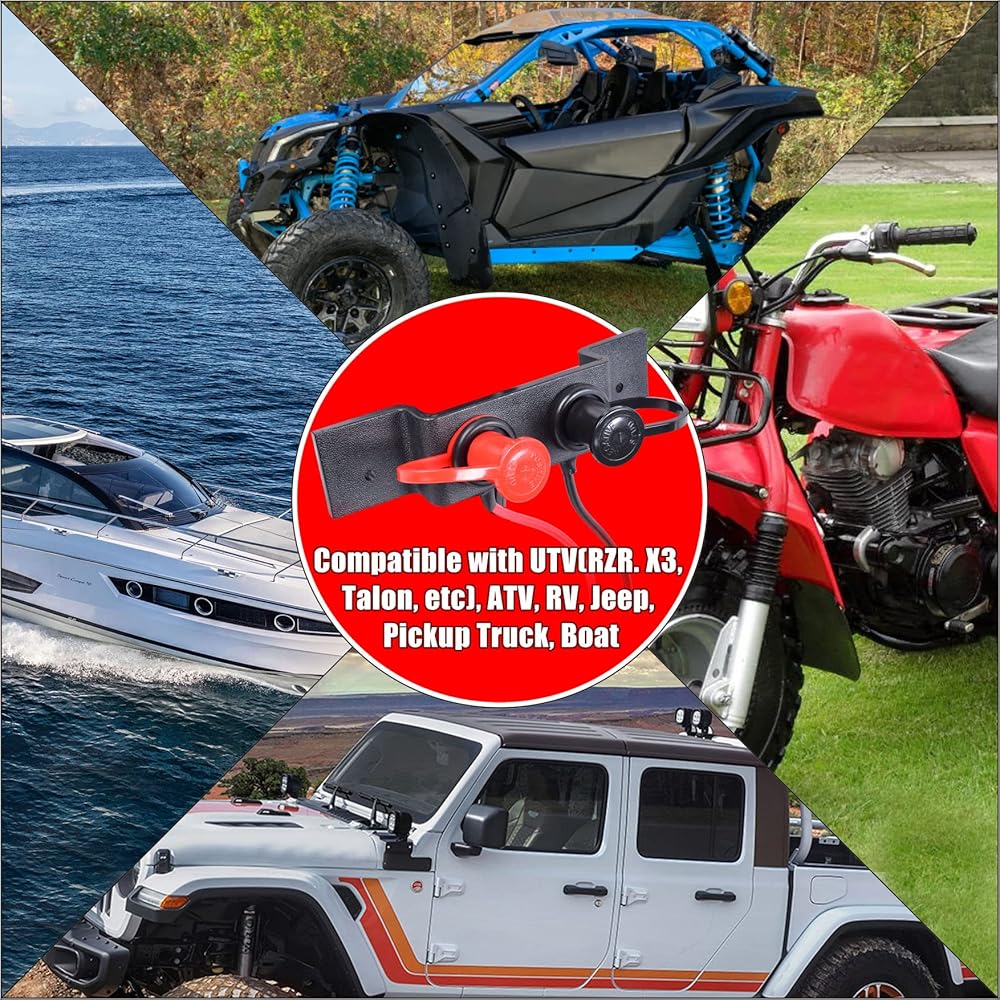 تطبيق واسع: مجموعة نقل بطارية UTV العالمية، عمود القفز لشحن السيارة سيتوافق مع موديلات Can Am X3 2 أو 4 مقاعد جميع الموديلات، متوافق مع جميع موديلات Polaris RZR 2 أو 4 مقاعد، متوافق مع جميع موديلات UTV/ ATV، قفز بطارية السيارة يمكن أيضًا تكييف مرحلة ما بعد البدء مع الشاحنات وسيارات السباق ومقطورات السفر والجرارات والجزازة والديزل والقوارب وما إلى ذلك