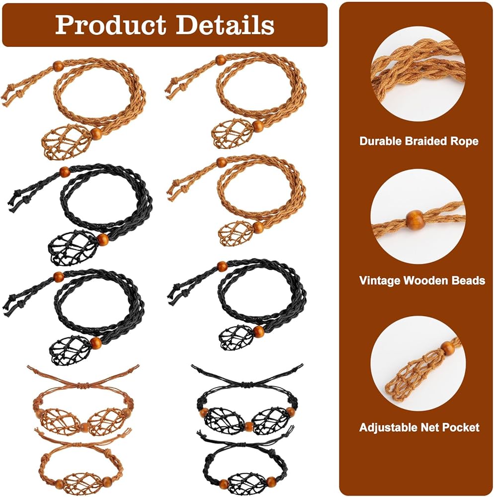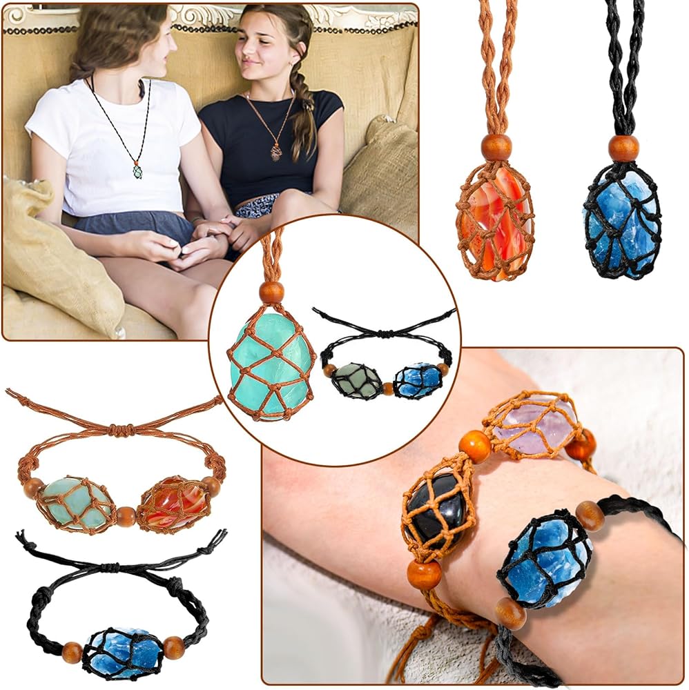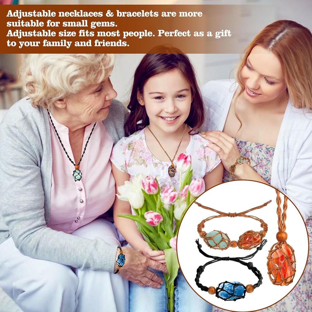 تصميم طول قابل للتعديل: يتم تعديل حامل الحجر الفارغ بخرزات خشبية، ويمكنك تعديل حجمه بسهولة عن طريق تحريك الخرز، بحيث يتم تثبيت الحجر بإحكام في مكانه. بالإضافة إلى ذلك، يتميز كل من السوار والقلادة بعقدة منزلقة تسمح لك بتعديل الحجم والطول بما يناسبك.