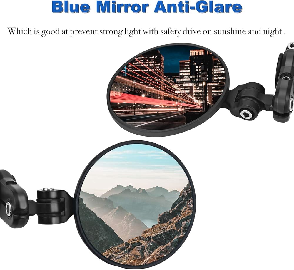 STRONG LIGHT PROTECTION - Trkimal Motorcycle Side mirrors with blue mirrors, which is good at prevent strong light with safety drive on sunshine and night .
