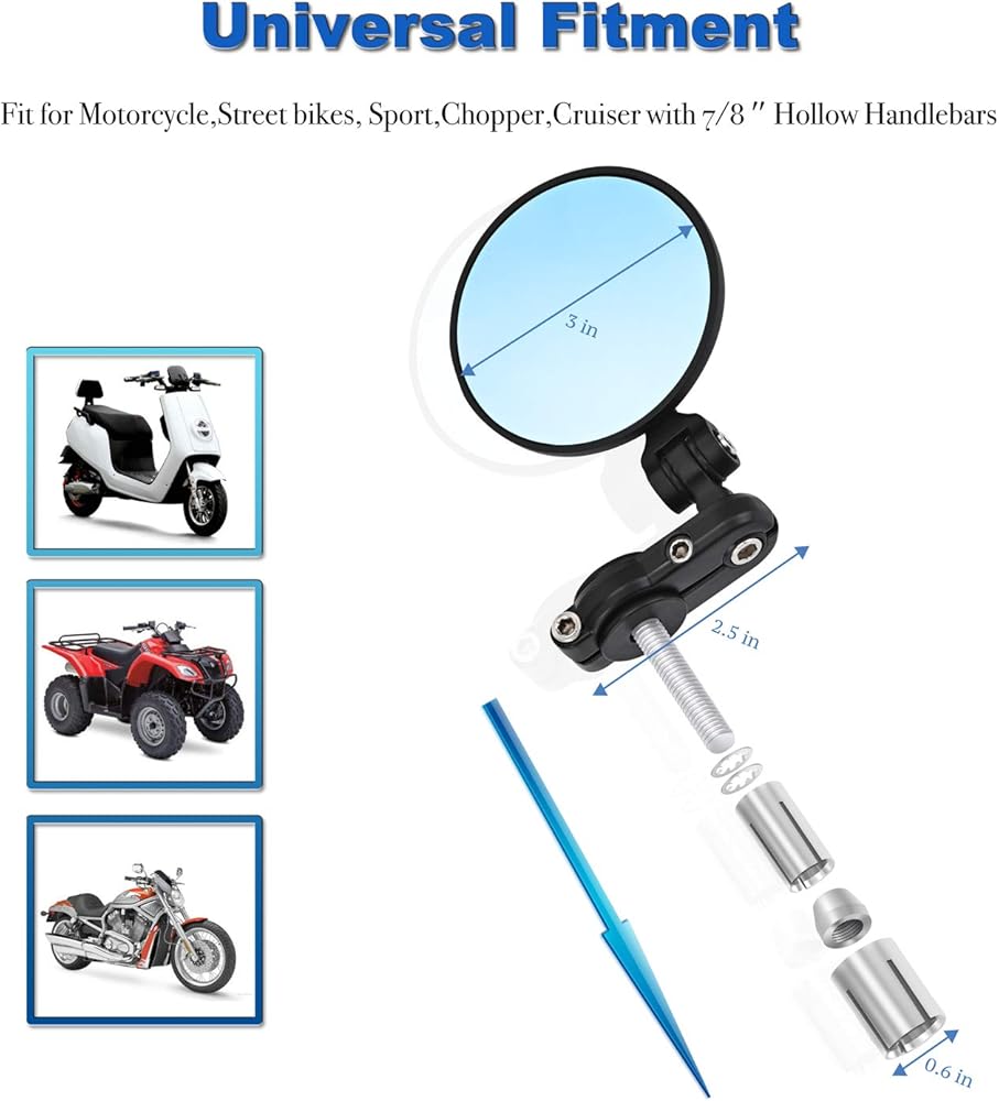 BASIC FUNCTION - 3" both left and right side motorcycle mirrors with convex glass lens, offers you a high definition and wide-angle rearview vision. Also increase the driver's awareness and field of vision and to remove blind spots by allowing the driver to see the vehicles and conditions behind him