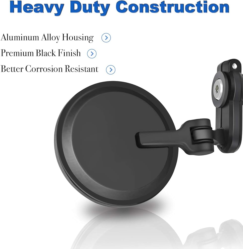More Clear, More Safe! Design of convex glass lens, TRKIMAL 3-inches Round Black 7/8" Handle Bar Foldable Side Mirrors Set provides to you a super clear and wide viewing angle, which helps you to easily catch sight of the rear vehicles or obstacles, no more looking back in driving, better ensuring a safe drive! It's shockproof and corrosion resistant, built for all weather conditions!