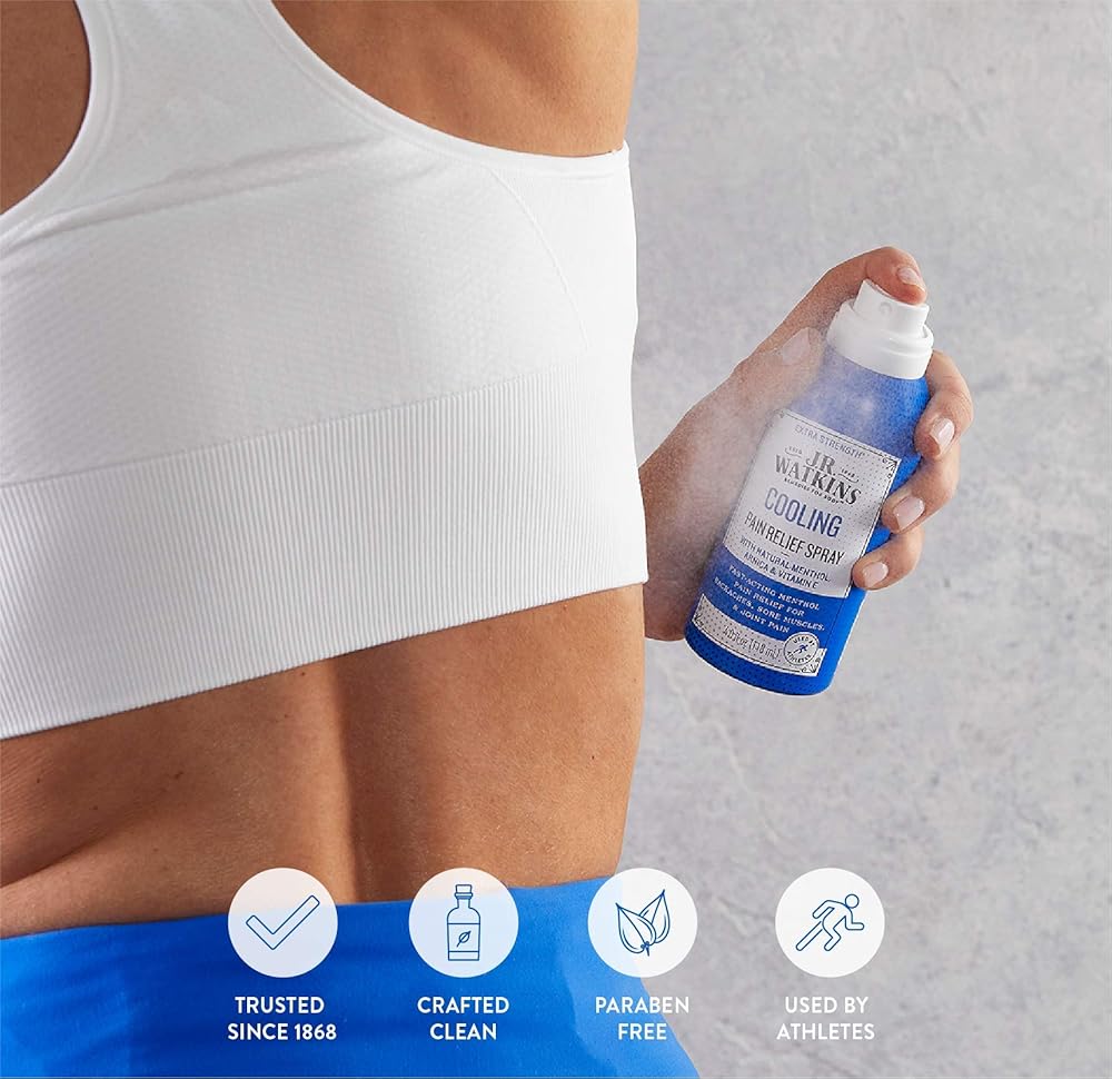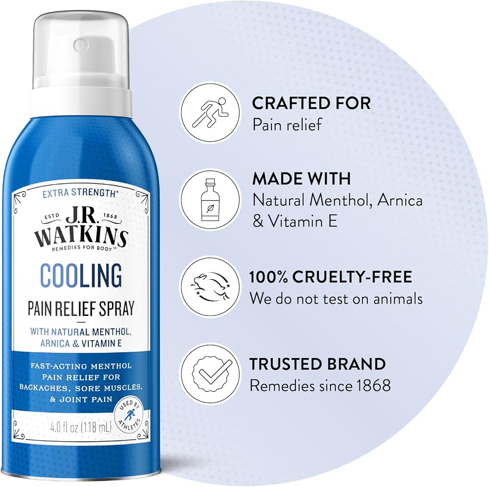 Cool your pain with J.R. Watkins Extra-Strength Pain Relief Spray. Crafted with natural Menthol to relieve aches and pains to provide muscles with temporary pain relief.