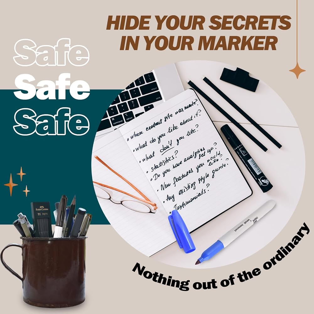 ✅ صغير الحجم وآمن: ارفع مستوى لعبة الاختباء الخاصة بك عن طريق تخزين النقود أو المجوهرات أو الأشياء الصغيرة داخل الحجرة المخفية لقلم شاربي، مما يضمن ملاذًا آمنًا لكنوزك بعيدًا عن أعين المتطفلين.