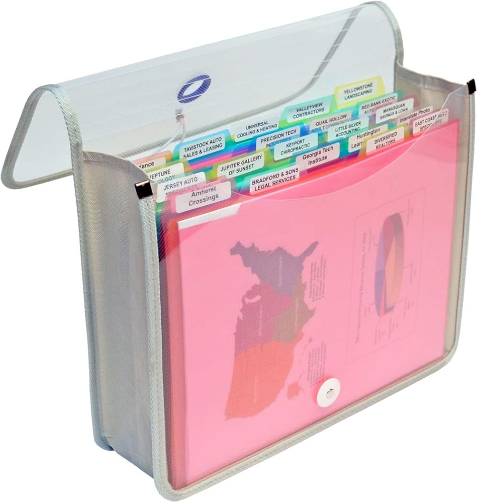 تنظيم وحماية ونقل المستندات الخاصة بك - يتضمن نظام الملفات المحمول الكامل مجموعة مكونة من 25 مجلدًا من مجلدات ملفات PocketFile الحصرية لدينا، وهي قابلة للإزالة. يبلغ مقاس المحفظة 13 بوصة عرضًا × 10 بوصة ارتفاعًا × 3 3/4 بوصة عمقًا ويمكنها استيعاب ما يصل إلى 3 1/2 بوصة من الملفات. إغلاق الحبل المرن يحمي ملفاتك.