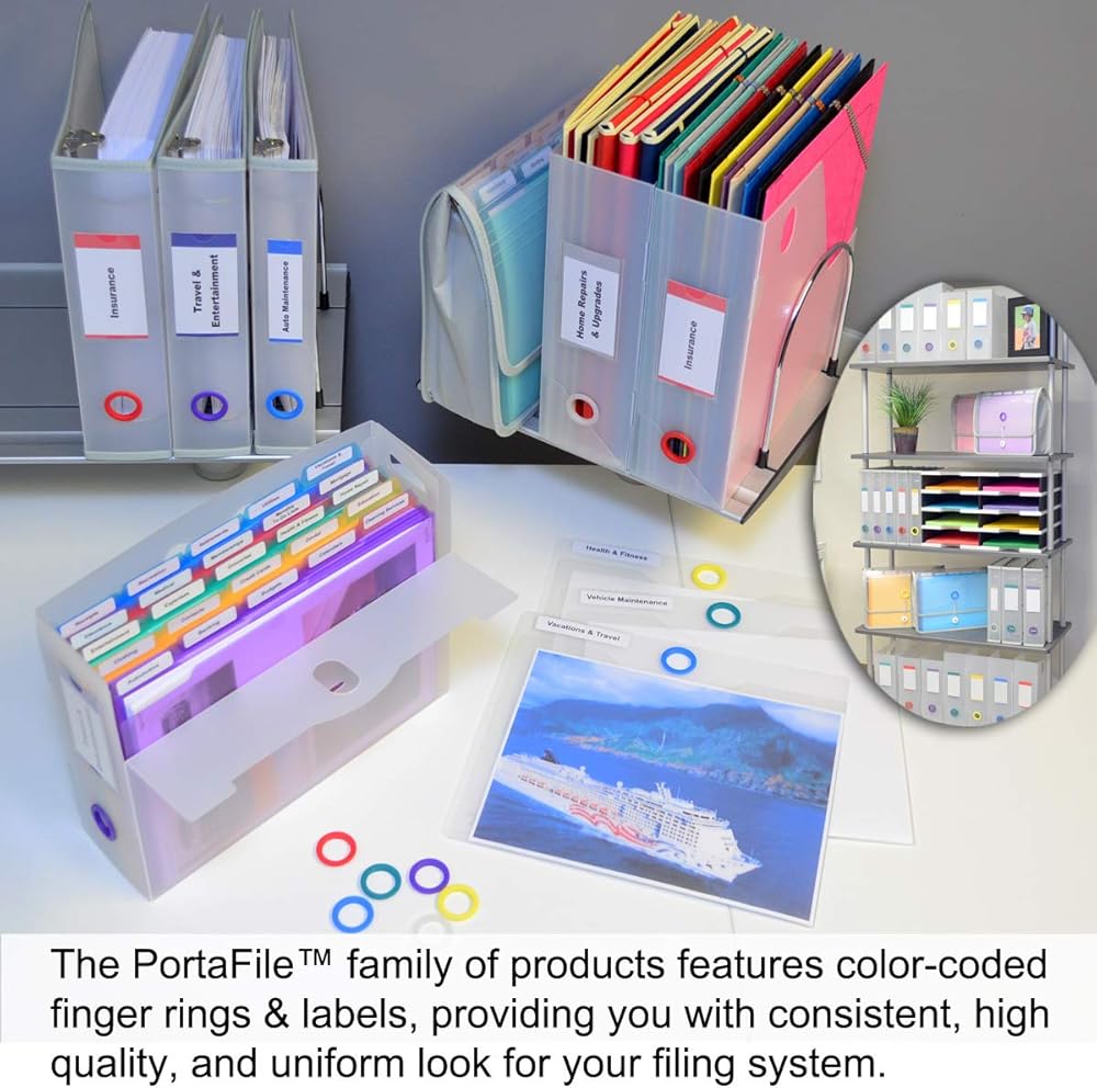 Ultimate Office PortaFile توسيع محفظة الملفات منظم المستندات. يتضمن نظام إدارة الملفات الكامل 25 مجلد ملفات PocketFile قابل للإزالة و6 حلقات ملفات ملونة للتعرف السريع على الملفات